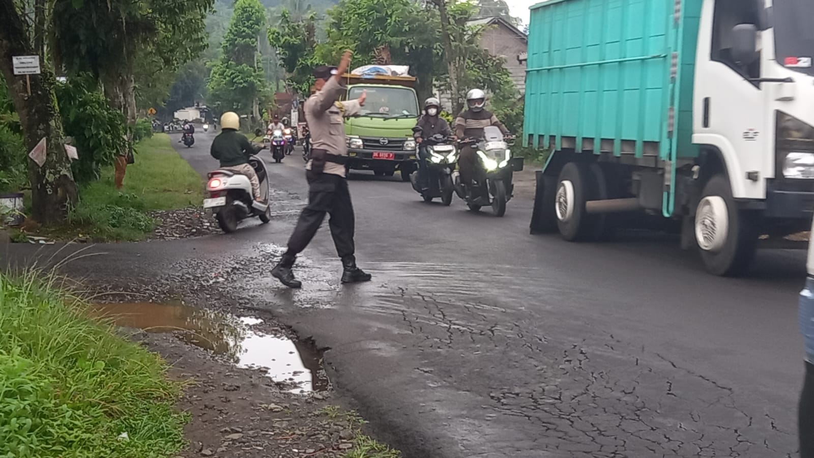 "Dari simpang empat kantor Pos sampai sepanjang Jl. Nusantara Bangli cukup padat mengingat banyak pertokoan, sehingga aktifitas masyarakat di pagi hari cukup ramai, untuk antisipasi terjadinya kemacetan arus lalu lintas bahkan menghindari terjadinya laka lantas personil Polsek Bangli diploting untuk melaksanakan PG pagi, "ujar Kompol I Gusti Made Sudarma Putra, S.Sos., S.H.,M.A.P.,
