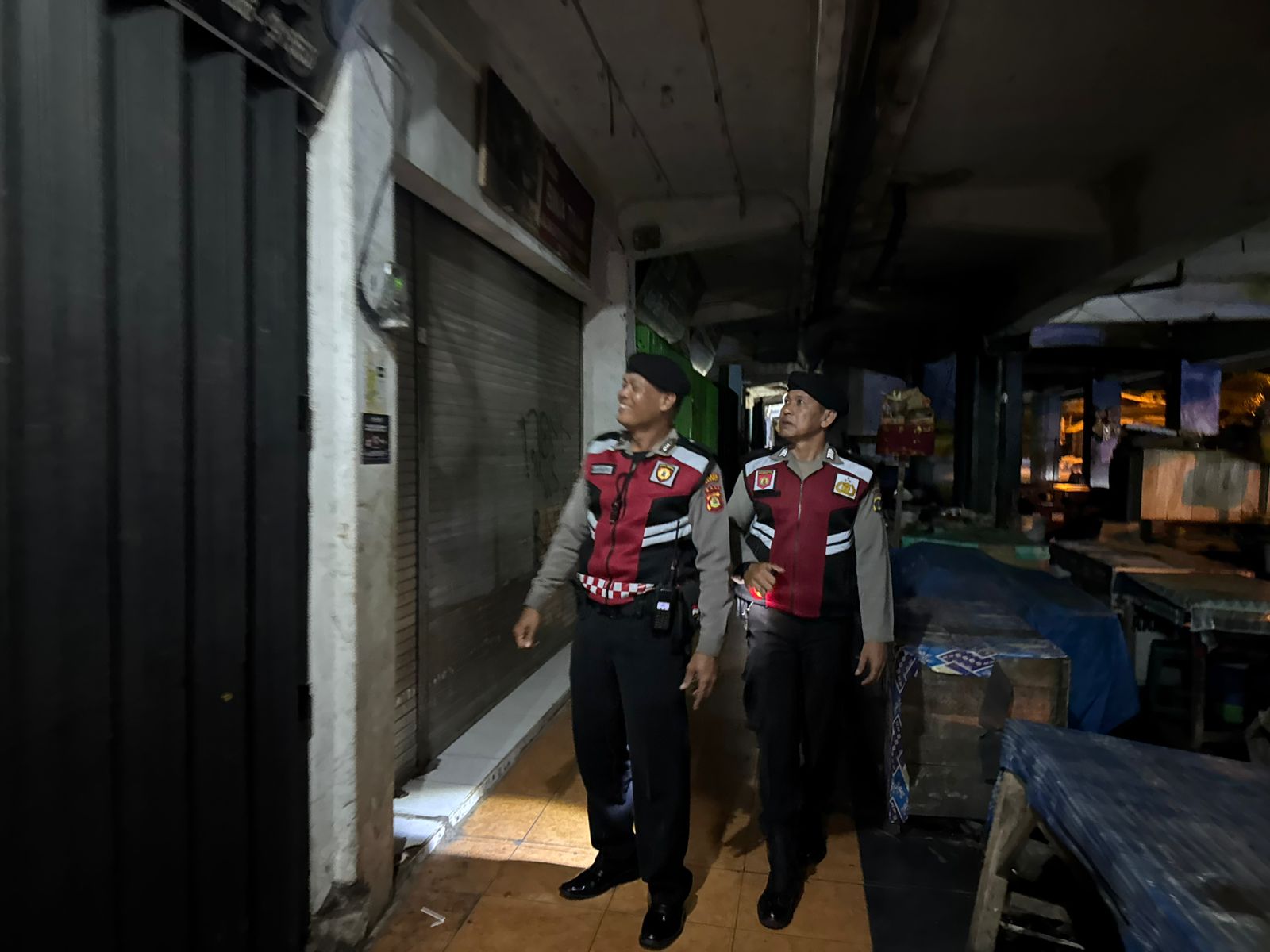 Antisipasi Gangguan Kamtibmas Pada Malam Hari, Personil Samapta Polres Bangli Lakukan Patroli Malam di Areal Pertokoan Pasar Kidul Bangli.