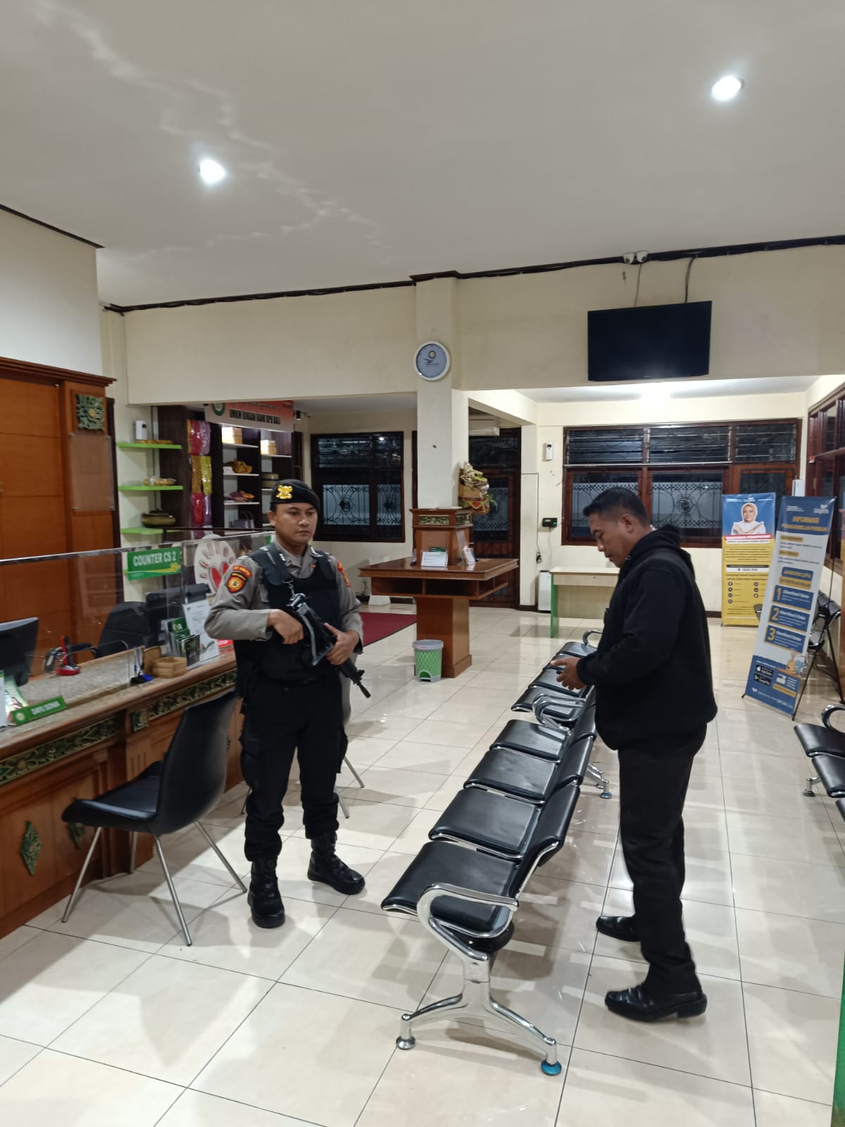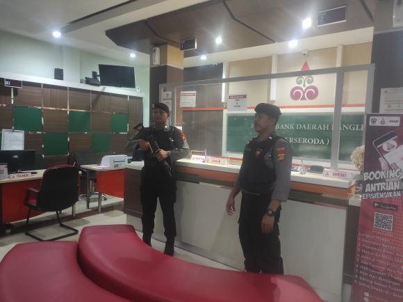 Unit Pam Obvit Satuan Samapta Polres Bangli Melaksanakan Pengamanan di Obyek Vital Bank BPD Bali Cabang Bangli.