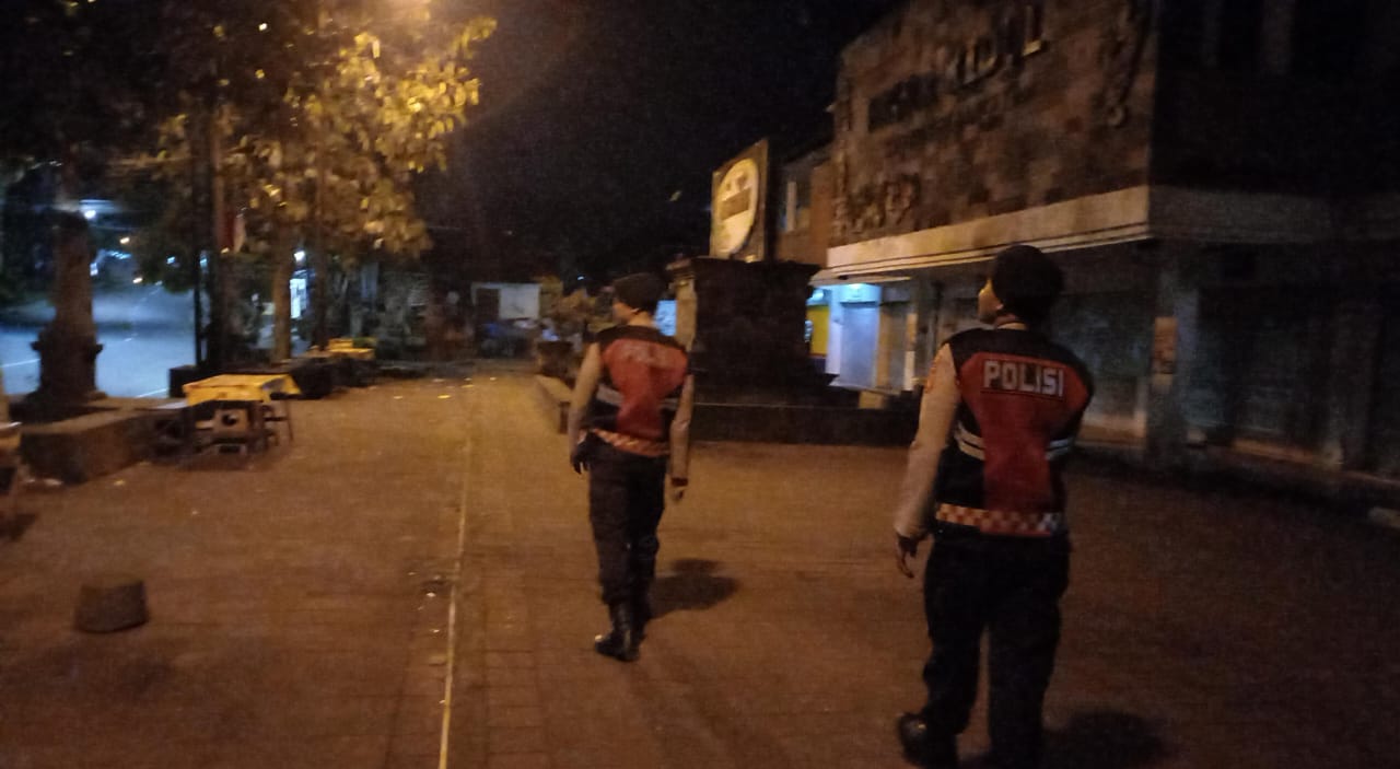 Antisipasi Gangguan Kamtibmas Pada Malam Hari, Personil Samapta Polres Bangli Lakukan Patroli Malam di Areal Pertokoan Pasar Kidul Bangli.
