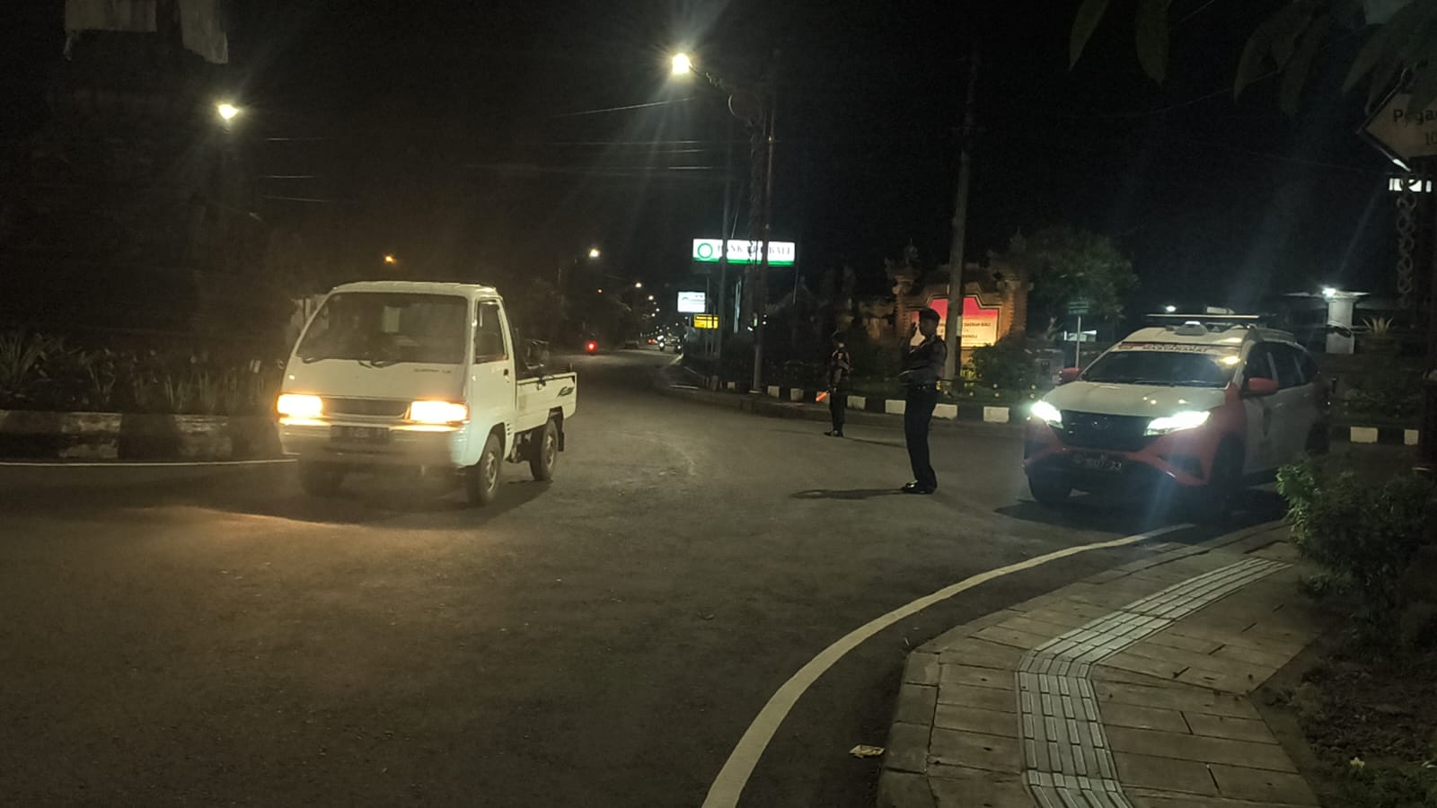 Antisipasi Gangguan Kamtibmas Pada Malam Hari, Personil Samapta Polres Bangli Lakukan Patroli Malam di Areal Pertokoan Pasar Kidul Bangli.