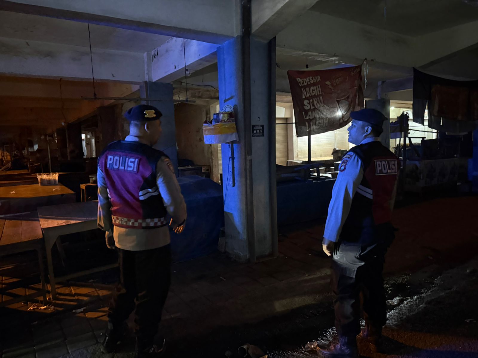 Antisipasi Gangguan Kamtibmas Pada Malam Hari, Personil Samapta Polres Bangli Lakukan Patroli Malam di Areal Pertokoan Pasar Kidul Bangli.