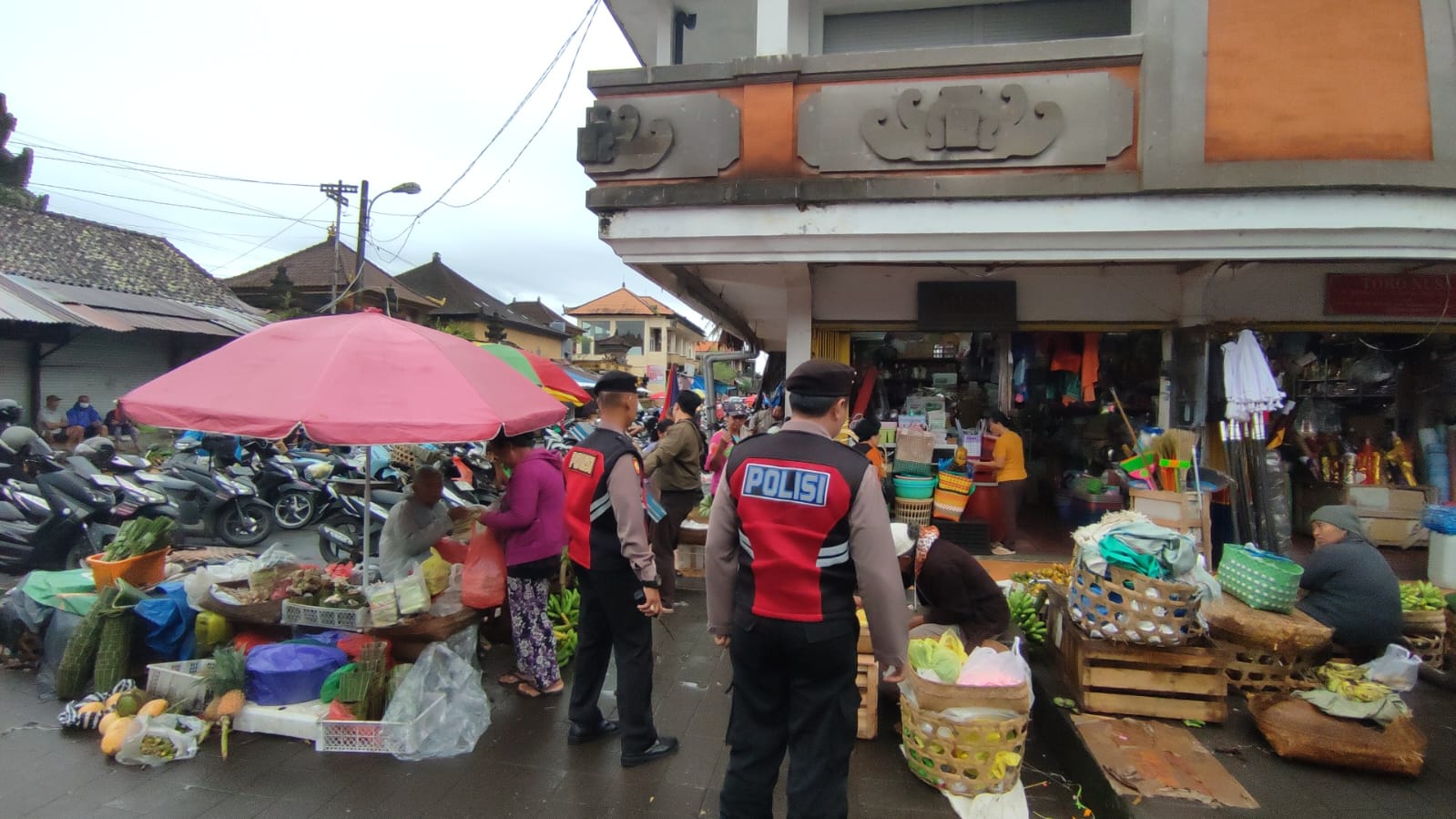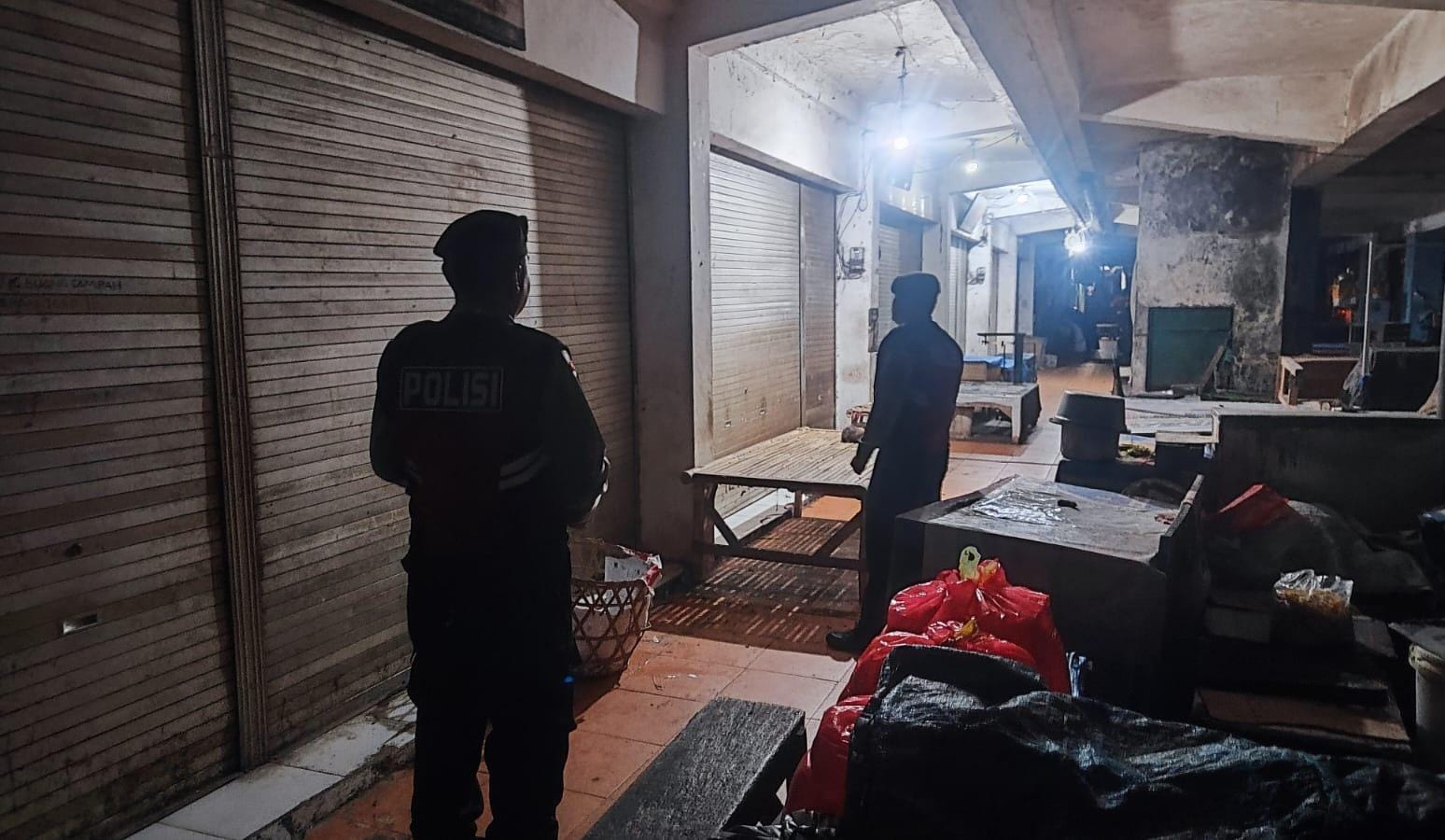 Antisipasi Gangguan Kamtibmas Pada Malam Hari, Personil Samapta Polres Bangli Lakukan Patroli Malam di Areal Pertokoan Pasar Kidul Bangli.