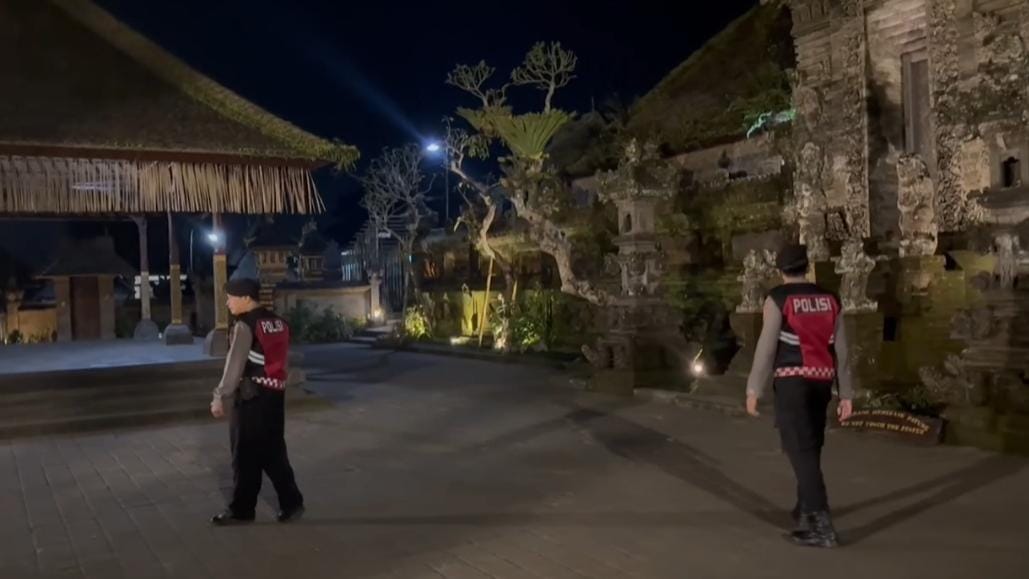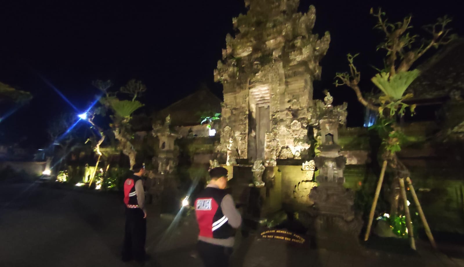 Menjaga Situasi Tetap Kondusi Pada Malam Hari, Sat Samapta Polres Bangli Sambangi Tempat Suci Pura Penataran Desa adat Penglipuran, Kec. Bangli