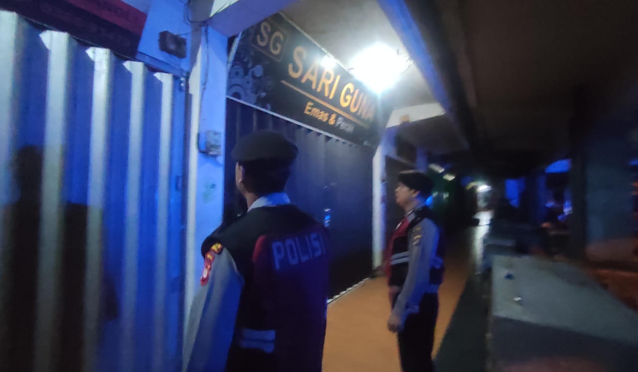 Antisipasi Gangguan Kamtibmas Pada Malam Hari, Personil Samapta Polres Bangli Lakukan Patroli Malam di Areal Pertokoan Pasar Kidul Bangli.