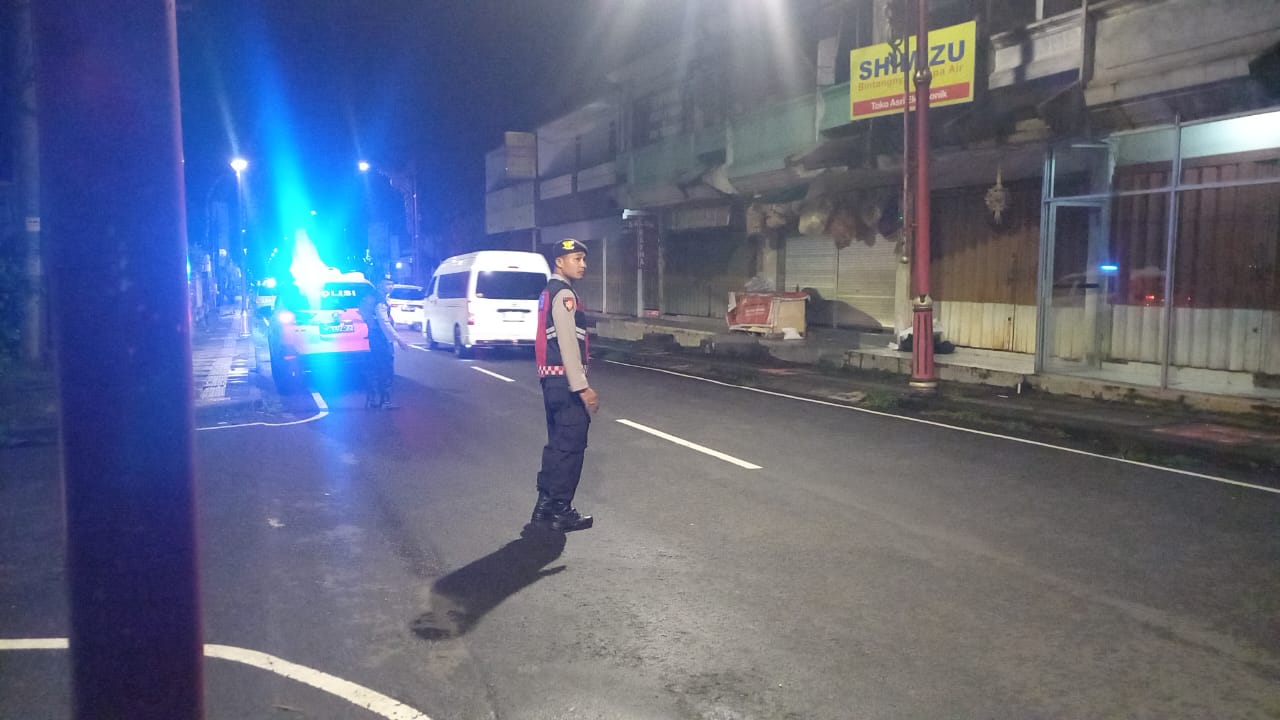 Antisipasi Gangguan Kamtibmas Pada Malam Hari, Personil Samapta Polres Bangli Lakukan Patroli Malam di Areal Pertokoan Pasar Kidul Bangli.