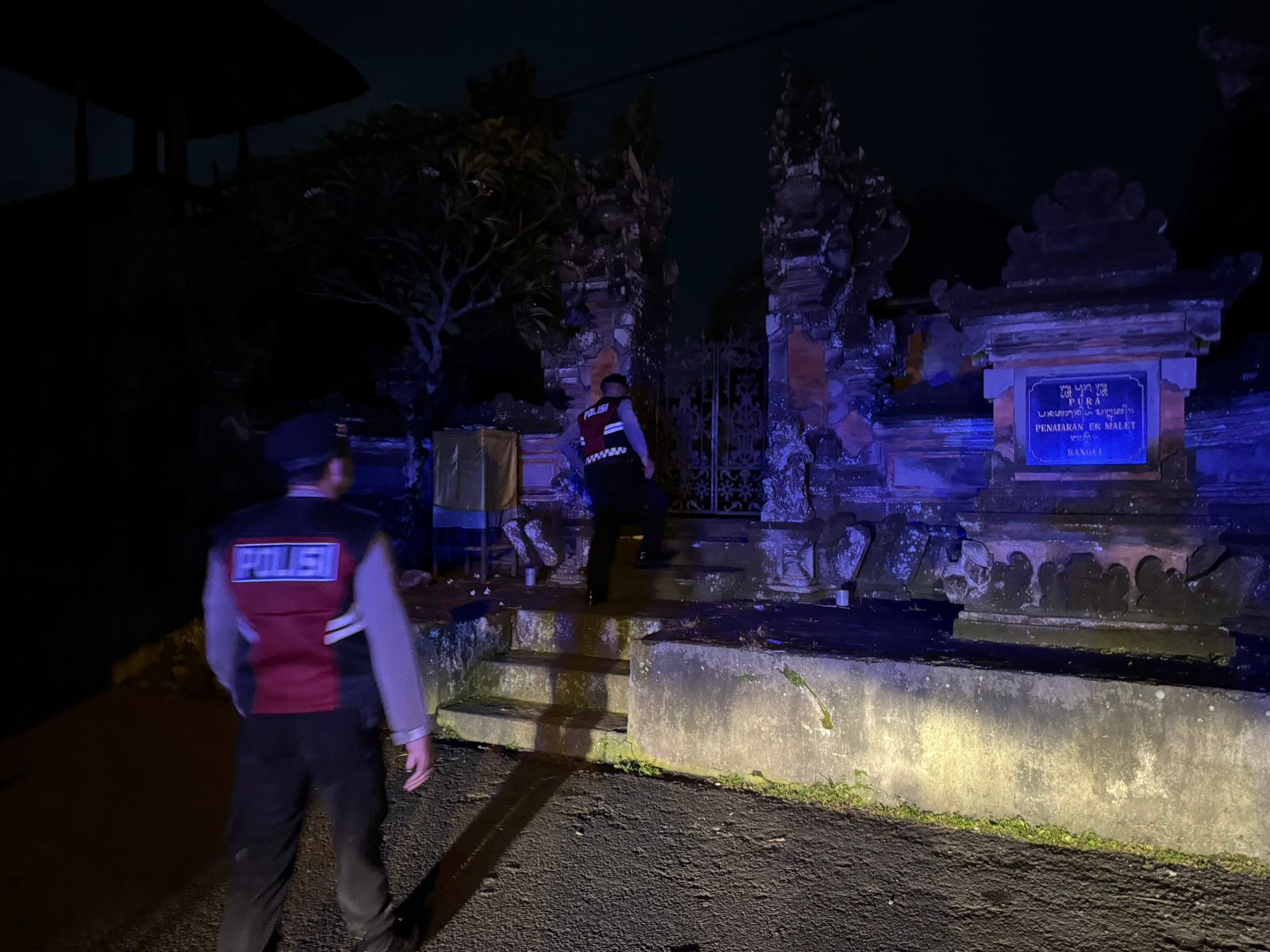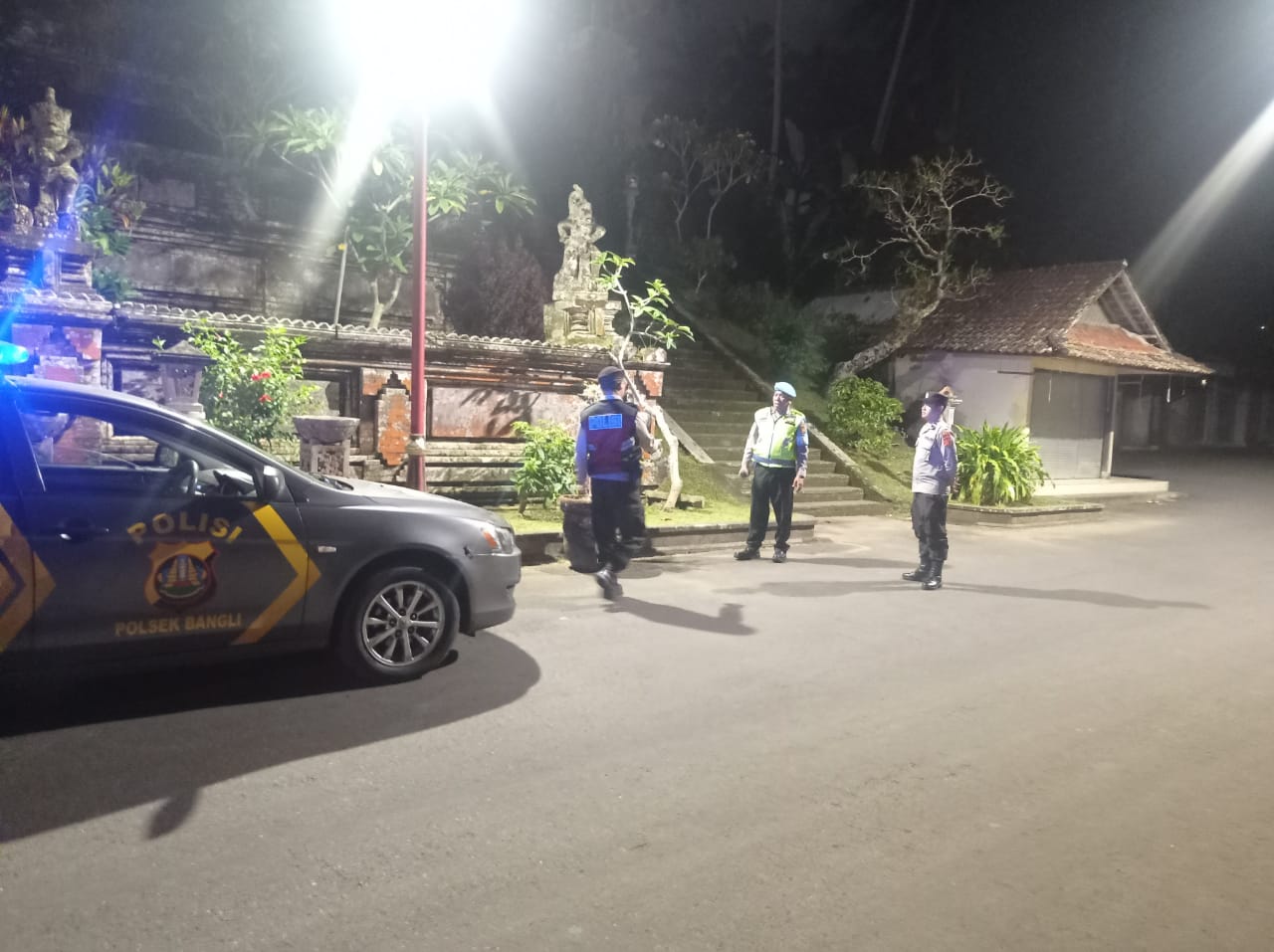 Menjaga Situasi Tetap Kondusi Pada Malam Hari, Sat Samapta Polres Bangli Sambangi Tempat Suci Pura Penataran Er Malet, Kel. Kawan, Kec. Bangli