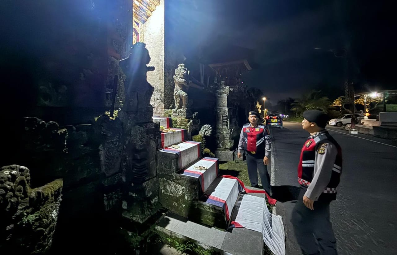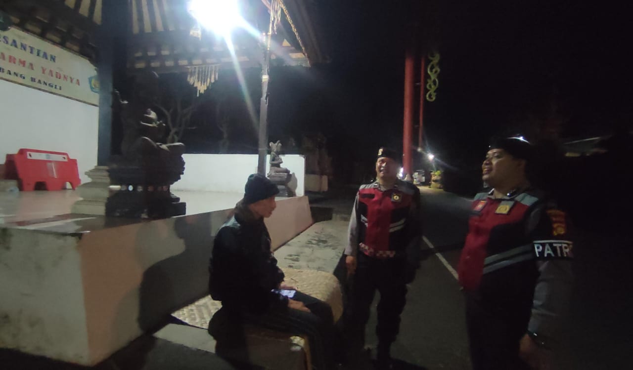 Menjaga Situasi Tetap Kondusi Pada Malam Hari, Sat Samapta Polres Bangli Sambangi Tempat Suci Pura Dalem Penuggekan, Kec. Bangli