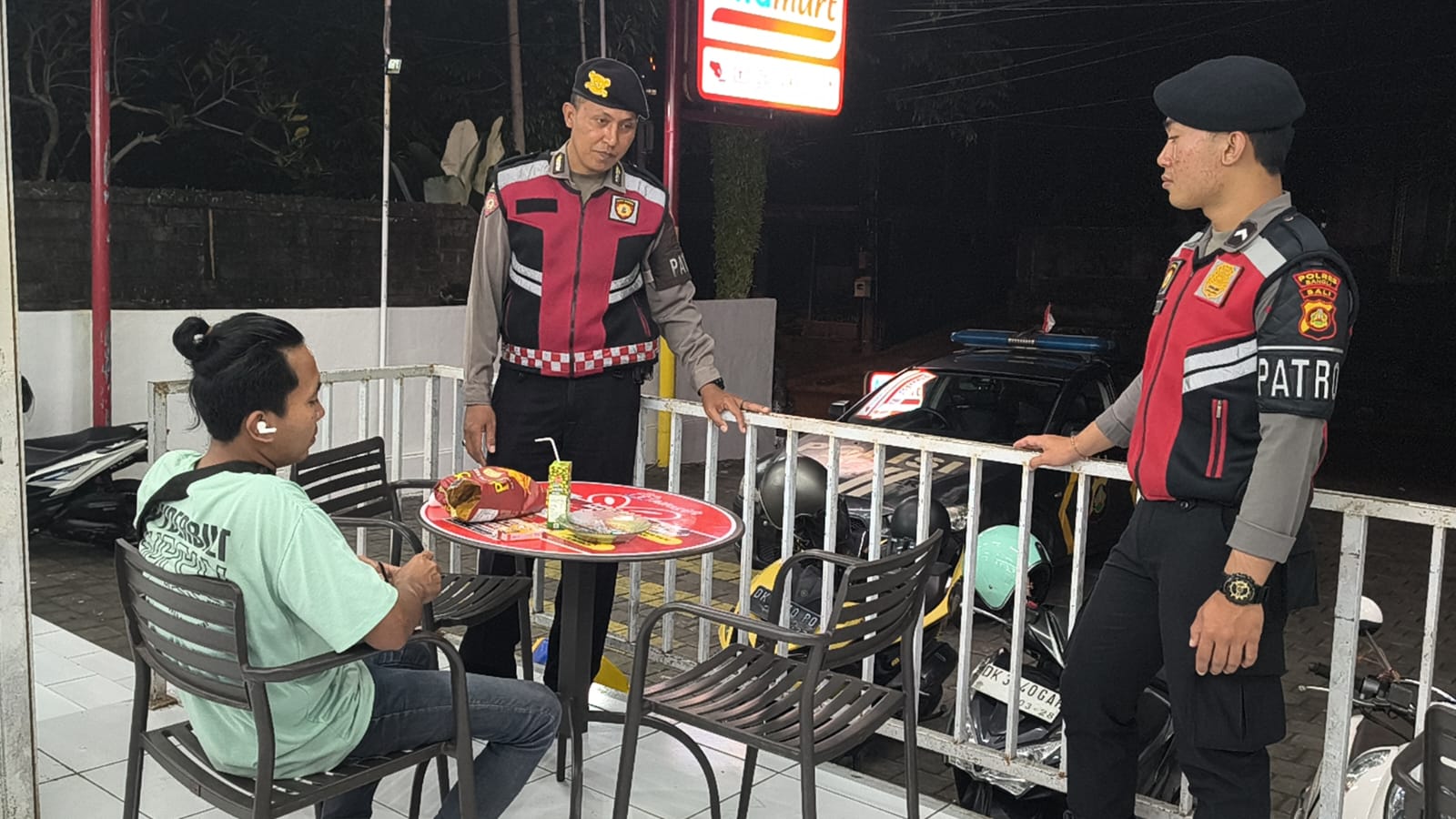 Antisipasi Gangguan Kamtibmas Pada Malam Hari, Personil Samapta Polres Bangli Lakukan Patroli Malam di Areal Pertokoan Pasar Kidul Bangli.