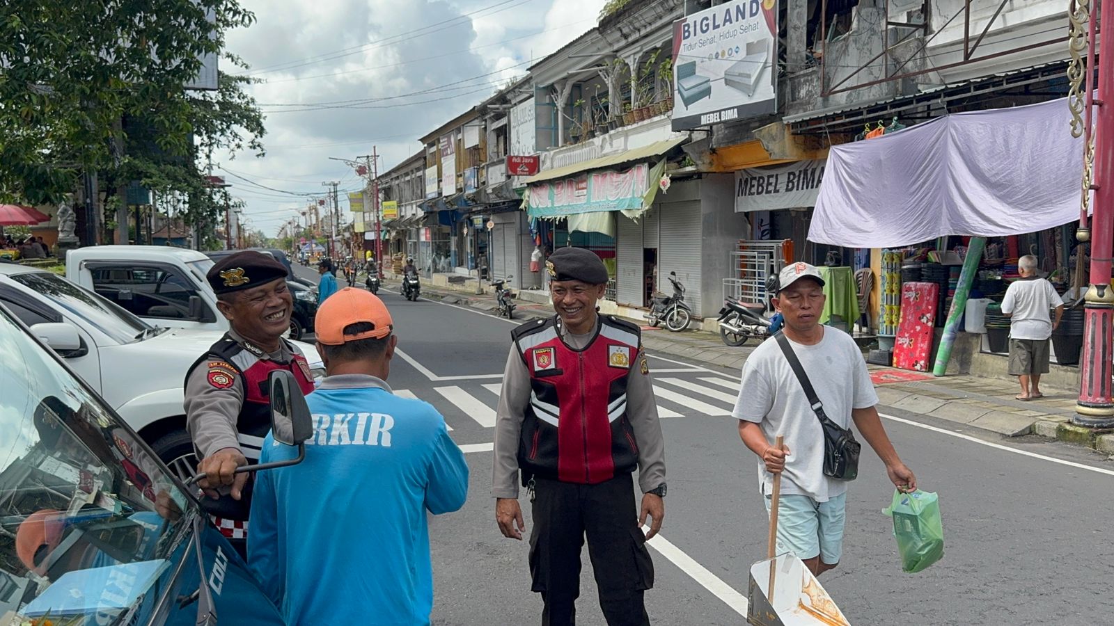 PERKECIL RUANG GERAK AKSI CURANMOR DIWILKUM BANGLI PERSONIL SAMAPTA POLRES BANGLI SAMBANGI TUKANG PARKIR