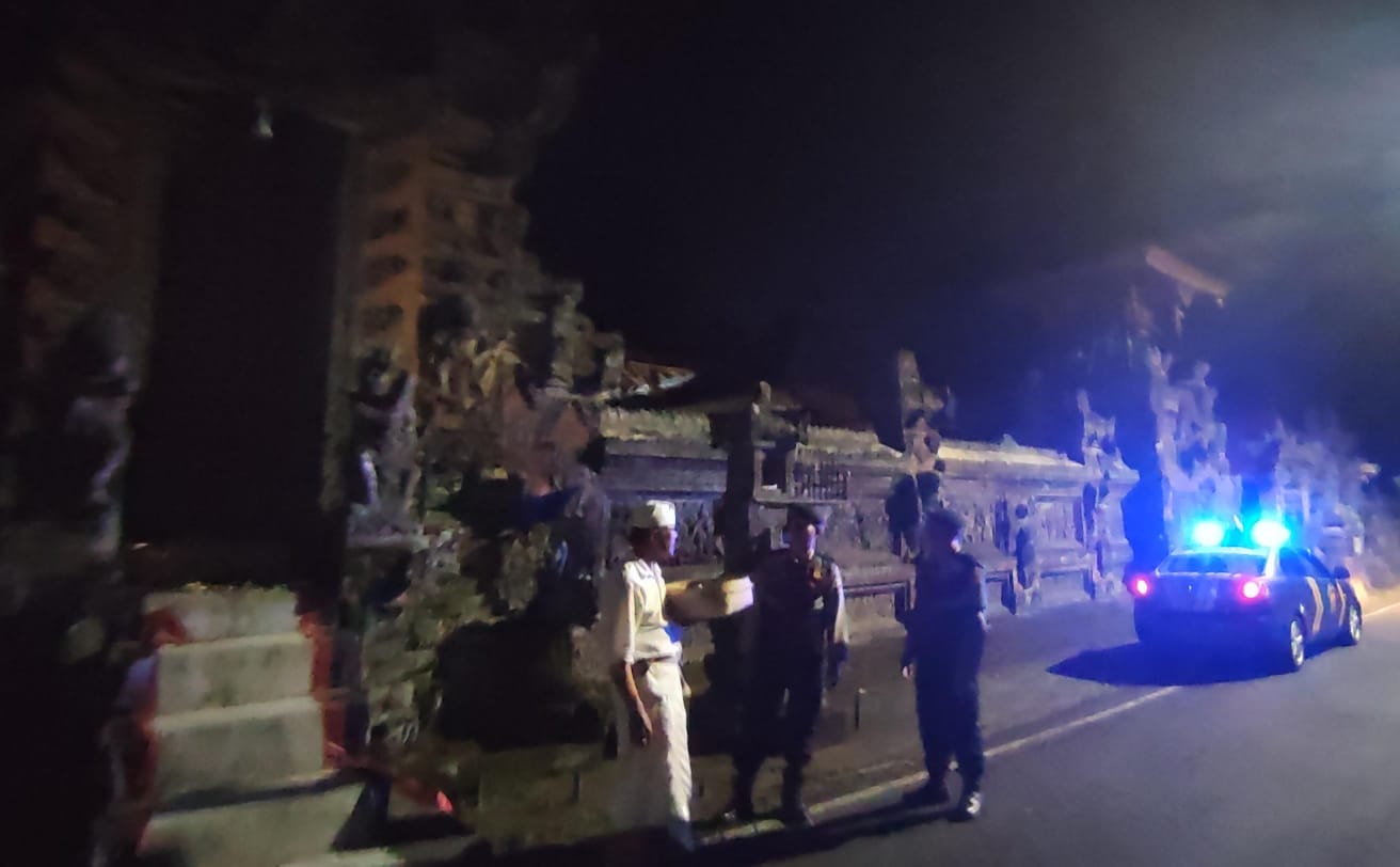 Menjaga Situasi Tetap Kondusi Pada Malam Hari, Sat Samapta Polres Bangli Sambangi Tempat Suci Pura Dalem Penunggekan, Kec. Bangli