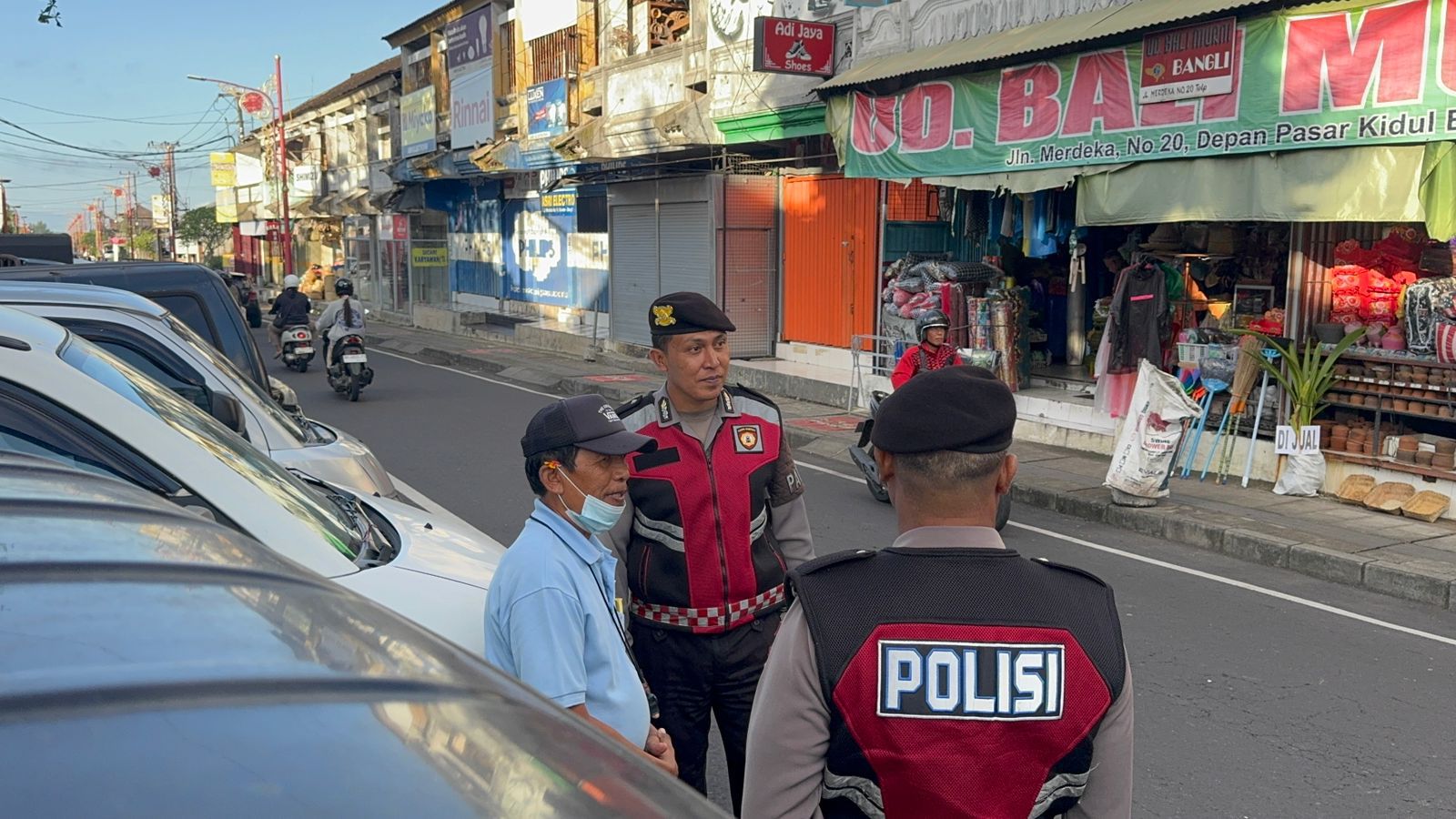 PERKECIL RUANG GERAK AKSI CURANMOR DIWILKUM BANGLI PERSONIL SAMAPTA POLRES BANGLI SAMBANGI TUKANG PARKIR