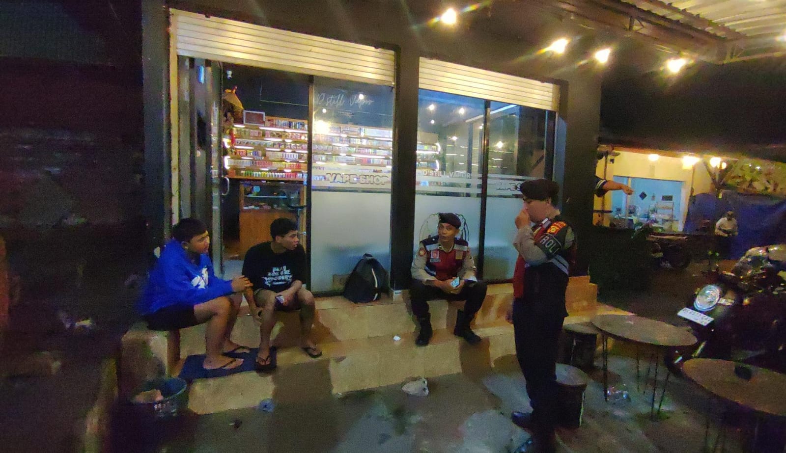 Antisipasi Gangguan Kamtibmas Pada Malam Hari, Personil Samapta Polres Bangli Lakukan Patroli Malam di Areal Pertokoan Pasar Kidul Bangli.