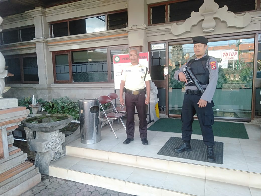 Unit Pam Obvit Satuan Samapta Polres Bangli Melaksanakan Pengamanan Obyek Vital Bank BPD Bali Cabang Bangli.