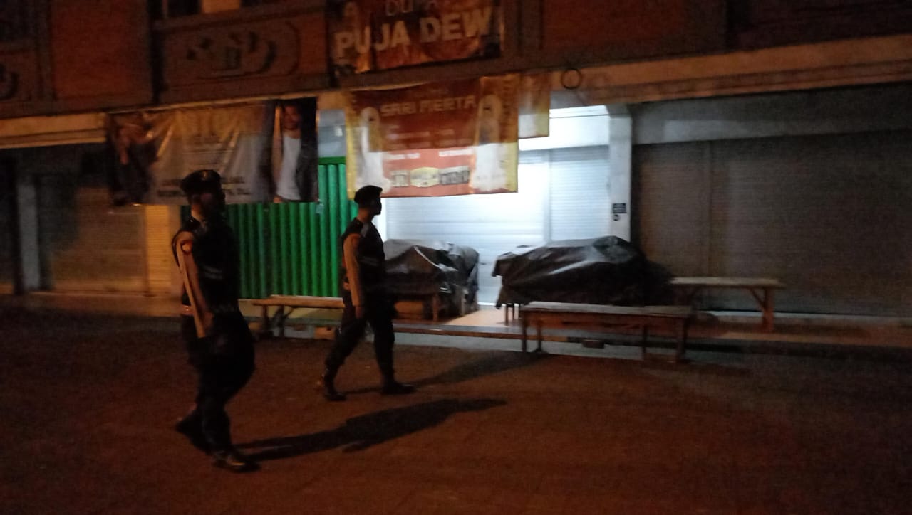 Antisipasi Gangguan Kamtibmas Pada Malam Hari, Personil Samapta Polres Bangli Lakukan Patroli Malam di Areal Pertokoan Pasar Kidul Bangli.
