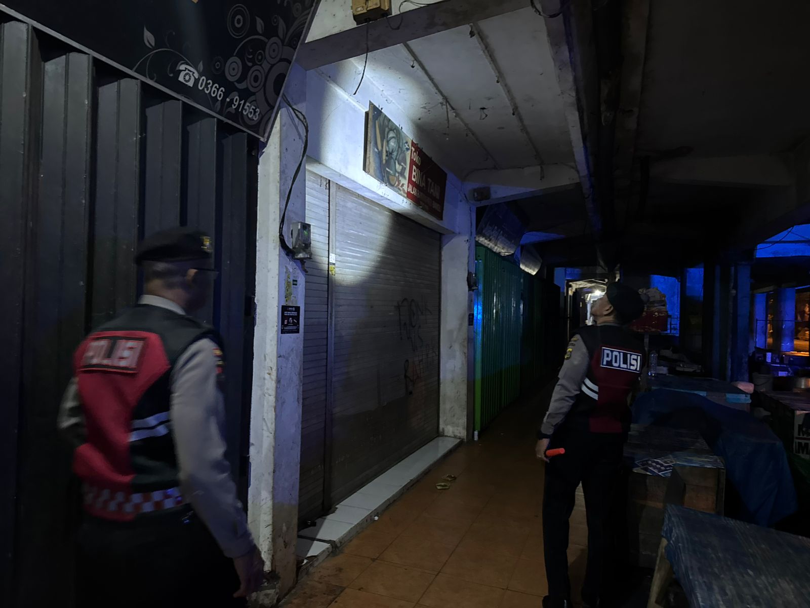 Antisipasi Gangguan Kamtibmas Pada Malam Hari, Personil Samapta Polres Bangli Lakukan Patroli Malam di Areal Pertokoan Pasar Kidul Bangli.