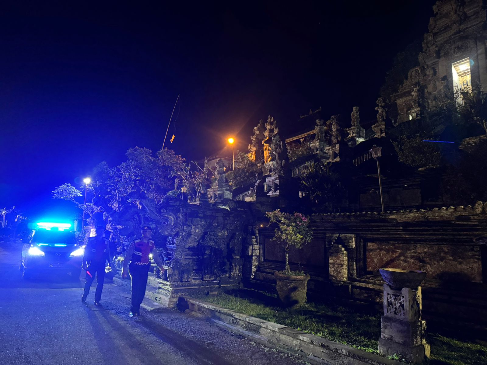 Menjaga Situasi Tetap Kondusi Pada Malam Hari, Sat Samapta Polres Bangli Sambangi Tempat Suci Pura Kehen, Kel. Cempaga, Kec. Bangli