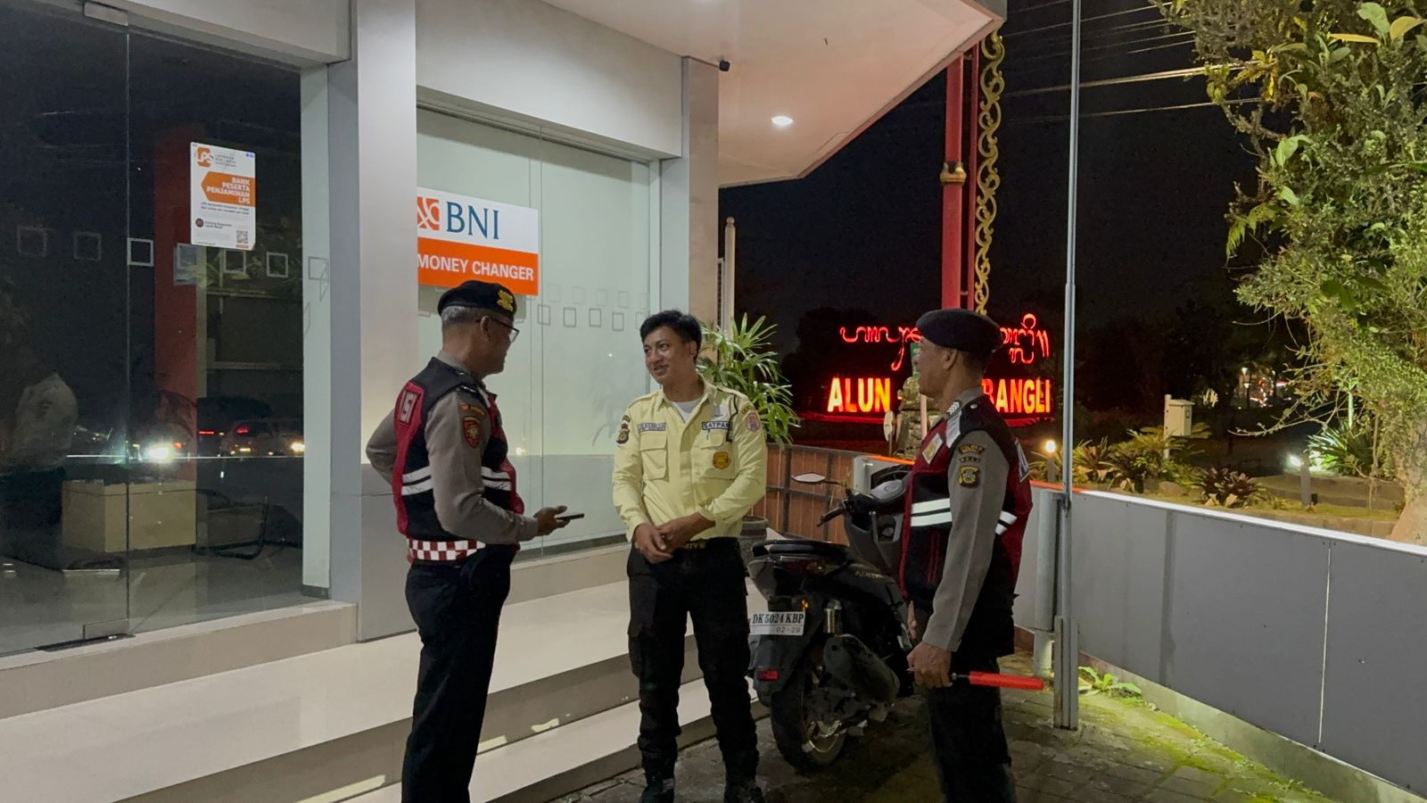 Sat Samapta Res Bangli Laksanakan Patroli Dialogis Dan Himbauan Kamtibmas Kepada Satpam Obyek Vital Bank BNI Cabang Bangli.