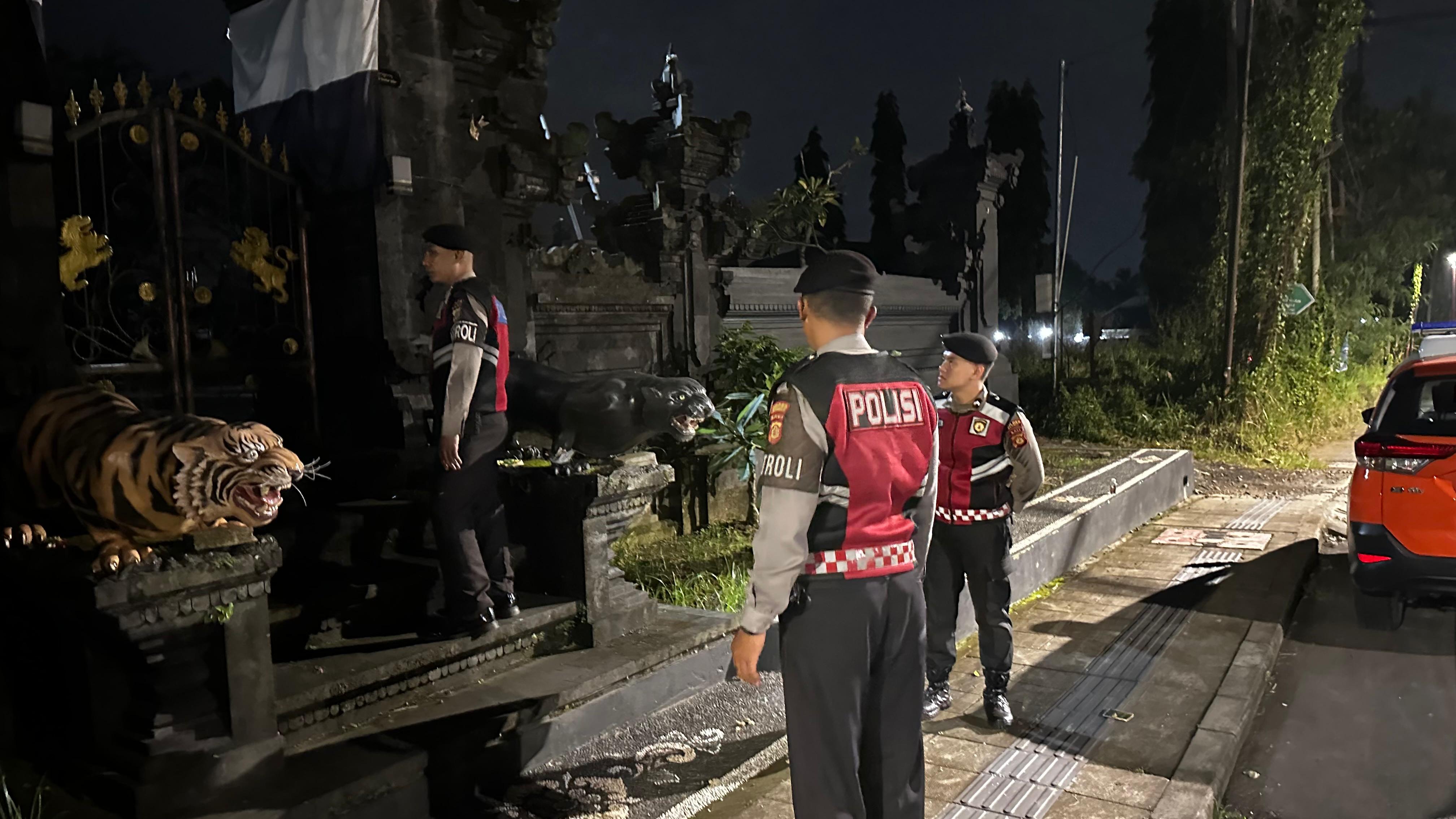 Menjaga Situasi Tetap Kondusi Pada Malam Hari,Sat Samapta Polres Bangli Sambangi Tempat Suci Pura Kawitan Batu Gaing ,Br Blumbang, Bangli