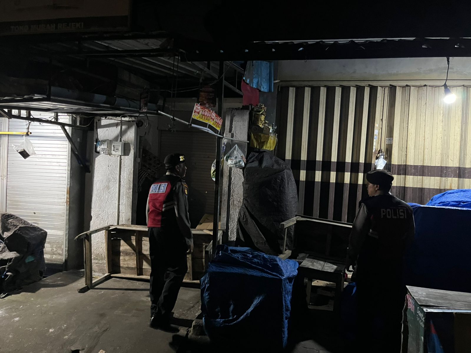 Antisipasi Gangguan Kamtibmas Pada Malam Hari, Personil Samapta Polres Bangli Lakukan Patroli Malam di Areal Pertokoan Pasar Kidul Bangli.