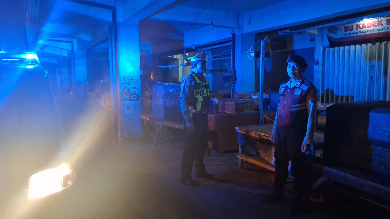Antisipasi Gangguan Kamtibmas Pada Malam Hari, Personil Samapta Polres Bangli Lakukan Patroli Malam di Areal Pertokoan Pasar Kidul Bangli.