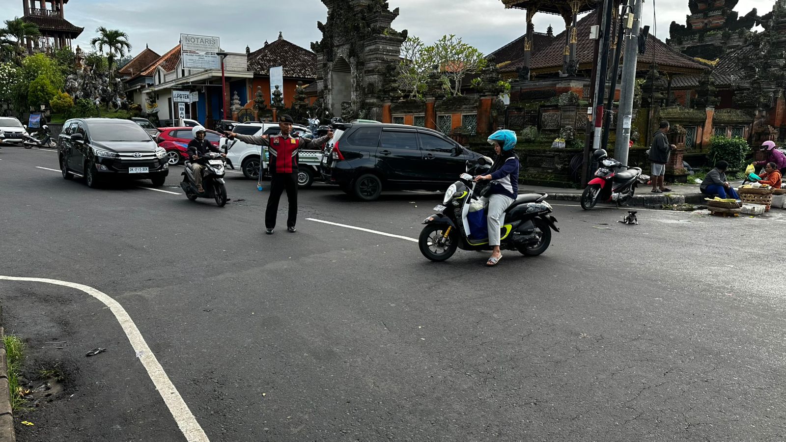 ATENSI ARUS LALULINTAS TETAP LANCAR, UNIT TURJAWALI SATUAN SAMAPTA RES BANGLI LAKSANAKAN PENGATURAN