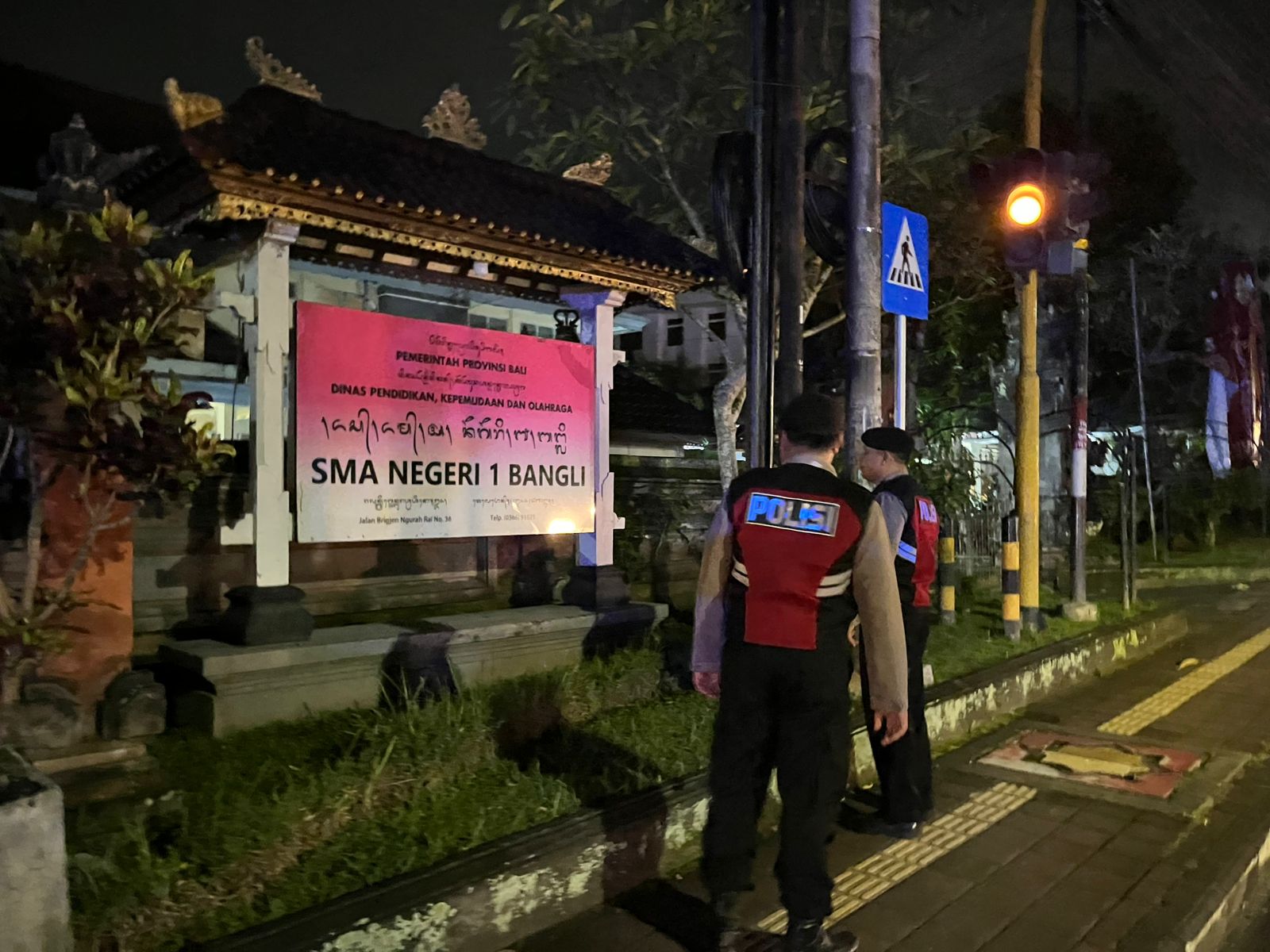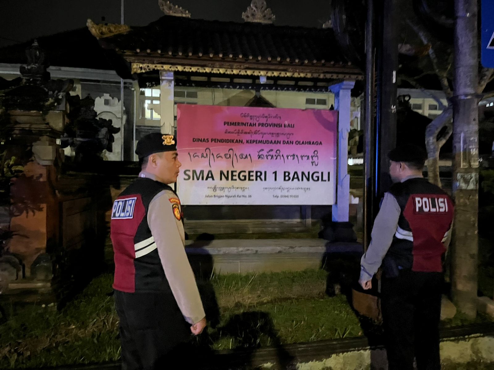 Satuan Samapta Polres Bangli Laksanakan Patroli Pada Malam Hari di SMA N 1 Bangli, Untuk Antisipasi Gangguan Kamtibmas.