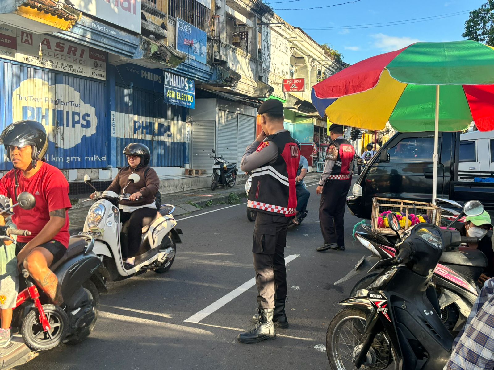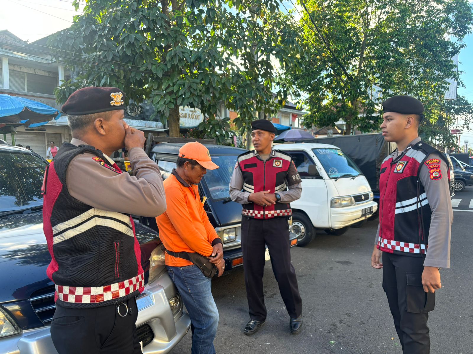 PERKECIL RUANG GERAK AKSI CURANMOR DIWILKUM BANGLI PERSONIL SAMAPTA POLRES BANGLI SAMBANGI TUKANG PARKIR