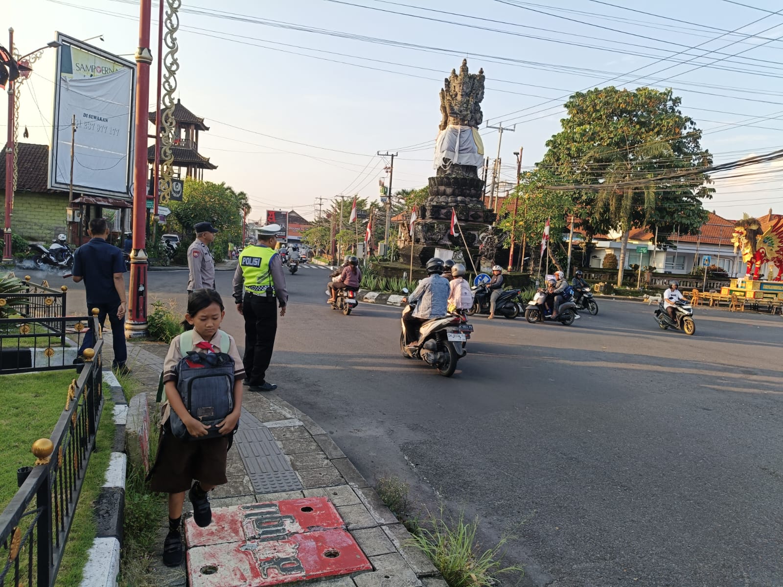 Wujud Pelayanan di Pagi Hari, Personil Polsek Bangli Laksanakan Pengaturan Arus Lalulintas