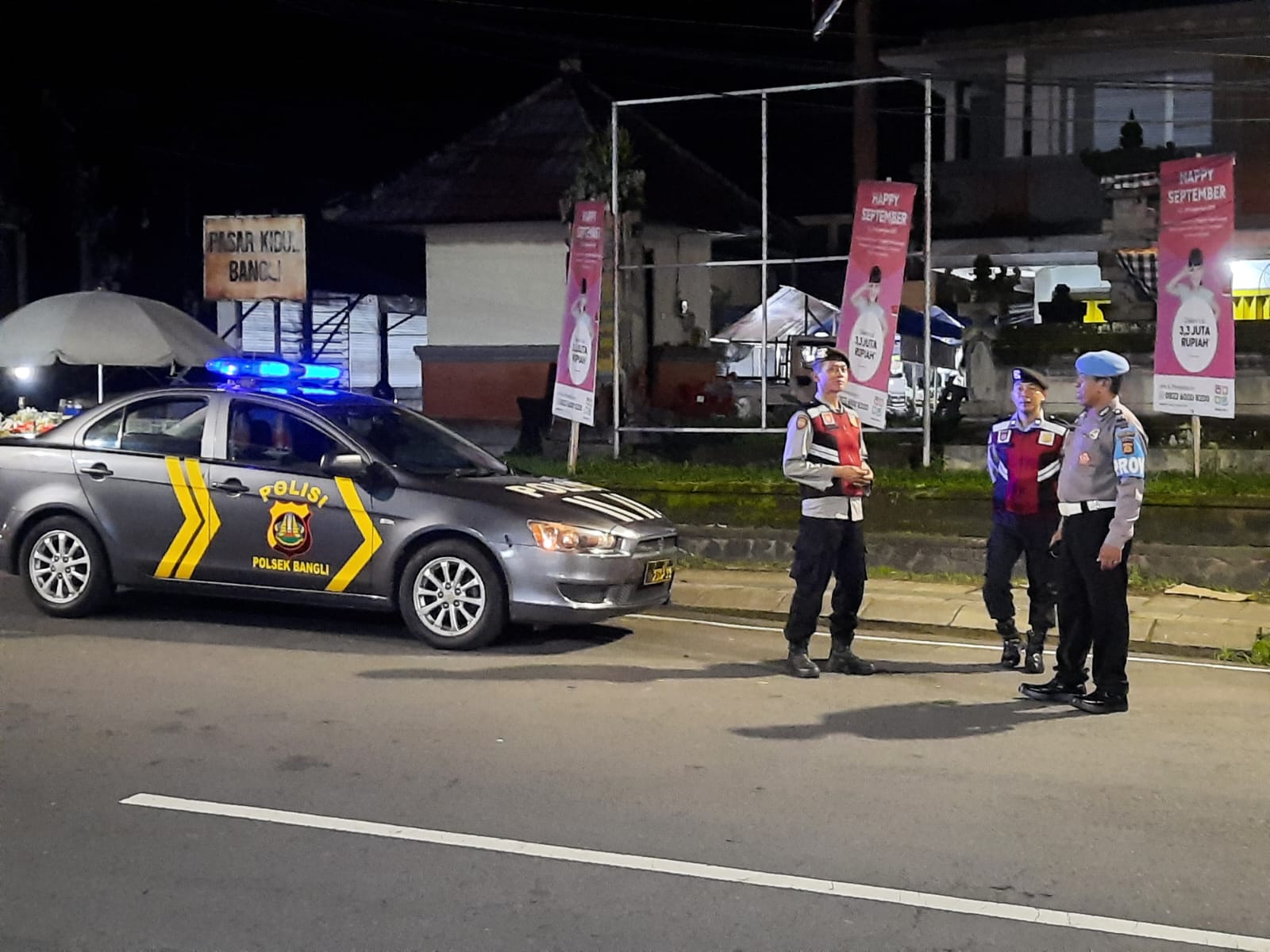 Menjaga Situasi Tetap Kondusif, Polsek Bangli Intensifkan Kegiatan Blue Light Patrol