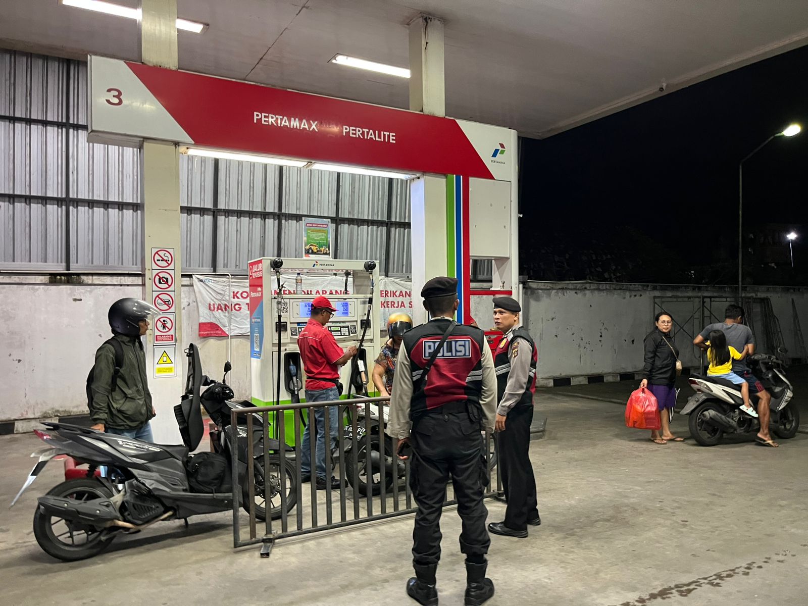 Antisipasi Gangguan Kamtibmas Pada Malam Hari, Personil Samapta Polres Bangli Lakukan Patroli Malam di Areal Pertokoan Pasar Kidul Bangli.