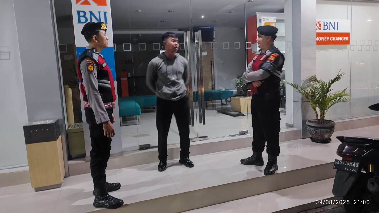 Unit Pam Obvit Sat Samapta Res Bangli Melaksanakan Pengamanan di Obyek Vital Bank BPD Bali Cabang Bangli.