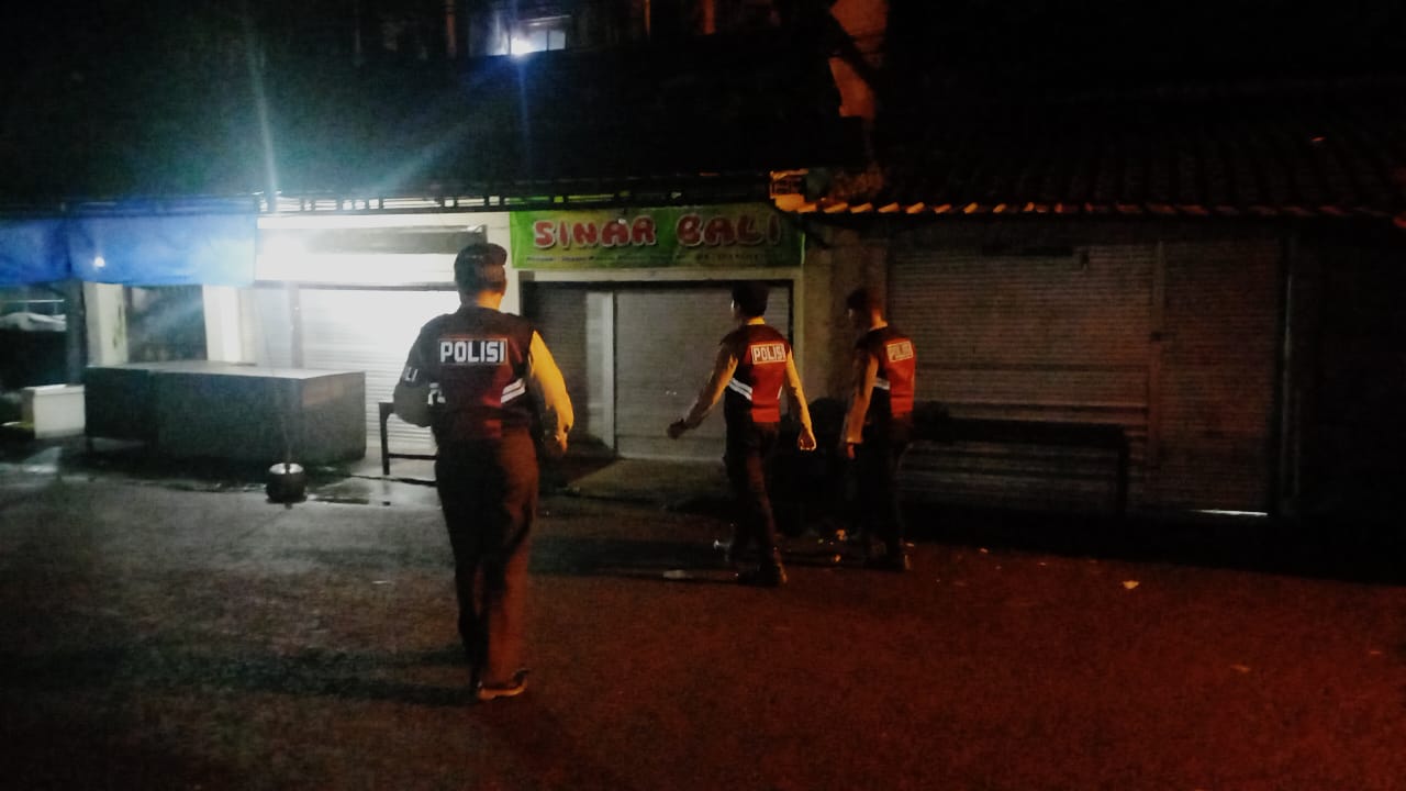 Antisipasi Gangguan Kamtibmas Pada Malam Hari, Personil Samapta Polres Bangli Lakukan Patroli Malam di Areal Pertokoan Pasar Kidul Bangli.