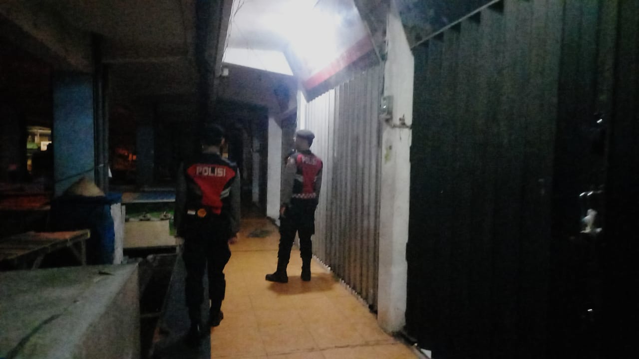Antisipasi Gangguan Kamtibmas Pada Malam Hari, Personil Samapta Polres Bangli Lakukan Patroli Malam di Areal Pertokoan Pasar Kidul Bangli.
