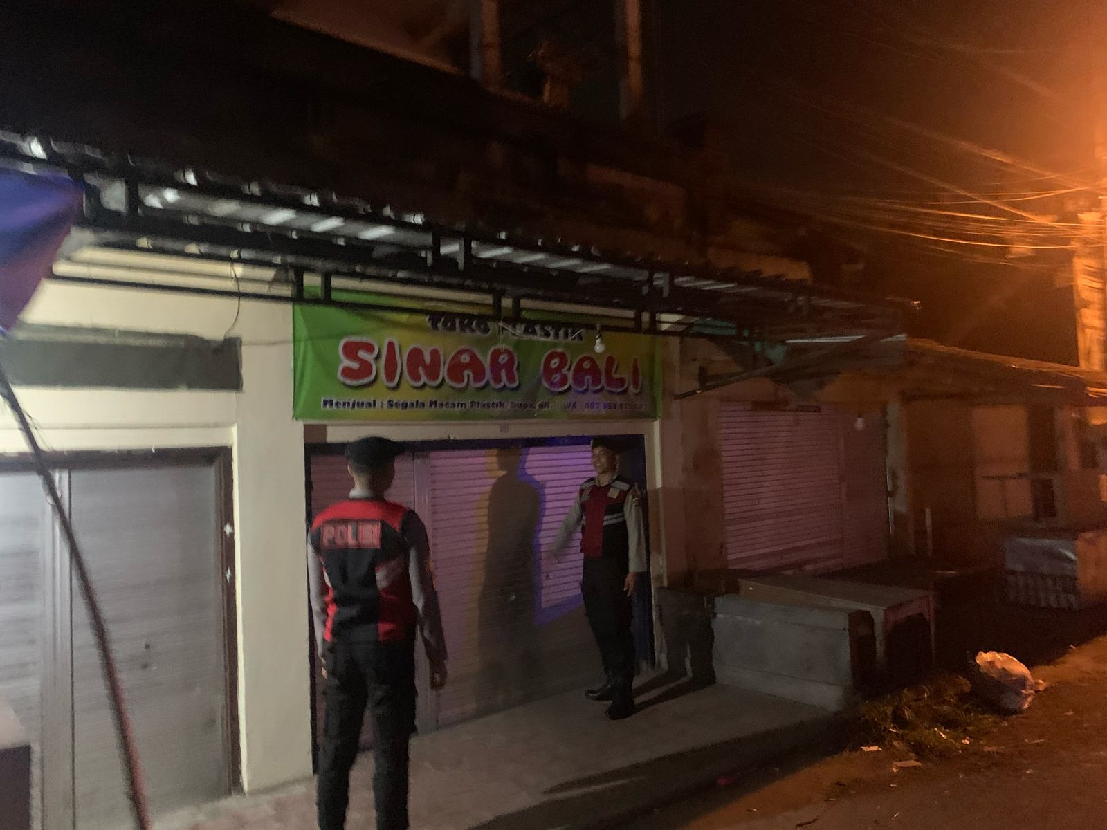 Antisipasi Gangguan Kamtibmas Pada Malam Hari, Personil Samapta Polres Bangli Lakukan Patroli Malam di Areal Pertokoan Pasar Kidul Bangli.
