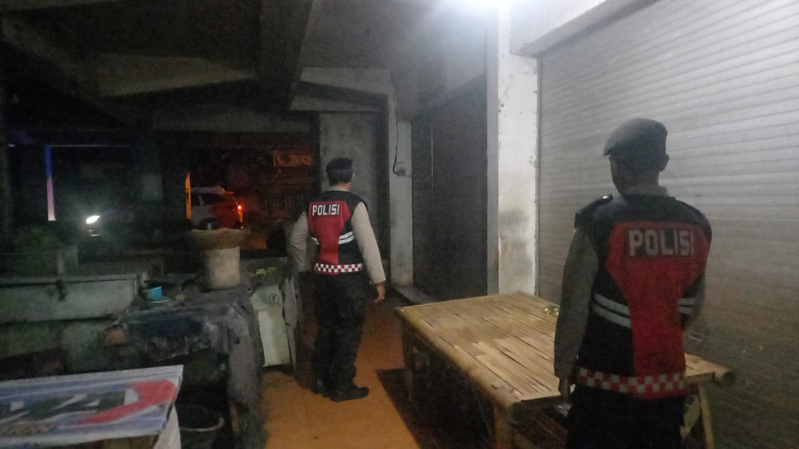 Antisipasi Gangguan Kamtibmas Pada Malam Hari, Personil Samapta Polres Bangli Lakukan Patroli Malam di Areal Pertokoan Pasar Kidul Bangli.