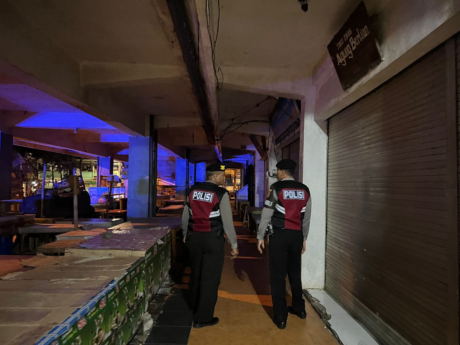 Antisipasi Gangguan Kamtibmas Pada Malam Hari, Personil Samapta Polres Bangli Lakukan Patroli Malam di Areal Pertokoan Pasar Kidul Bangli.