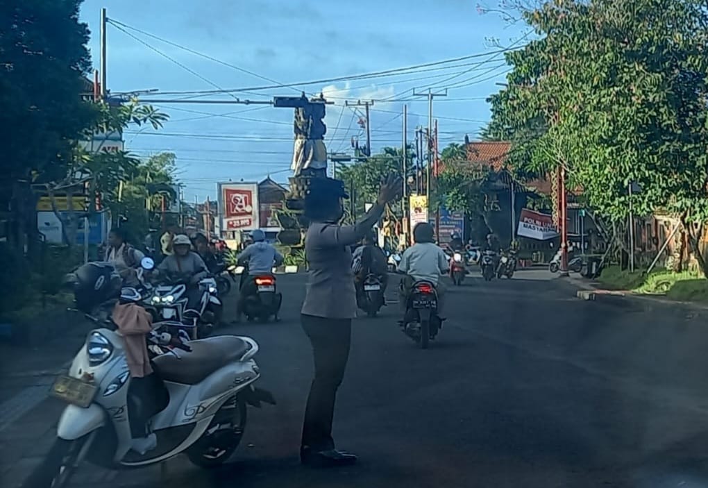 Antisipasi Kegiatan Masyarakat di Pagi Hari, Personil Polsek Bangli Laksanakan Pengaturan Arus Lalulintas