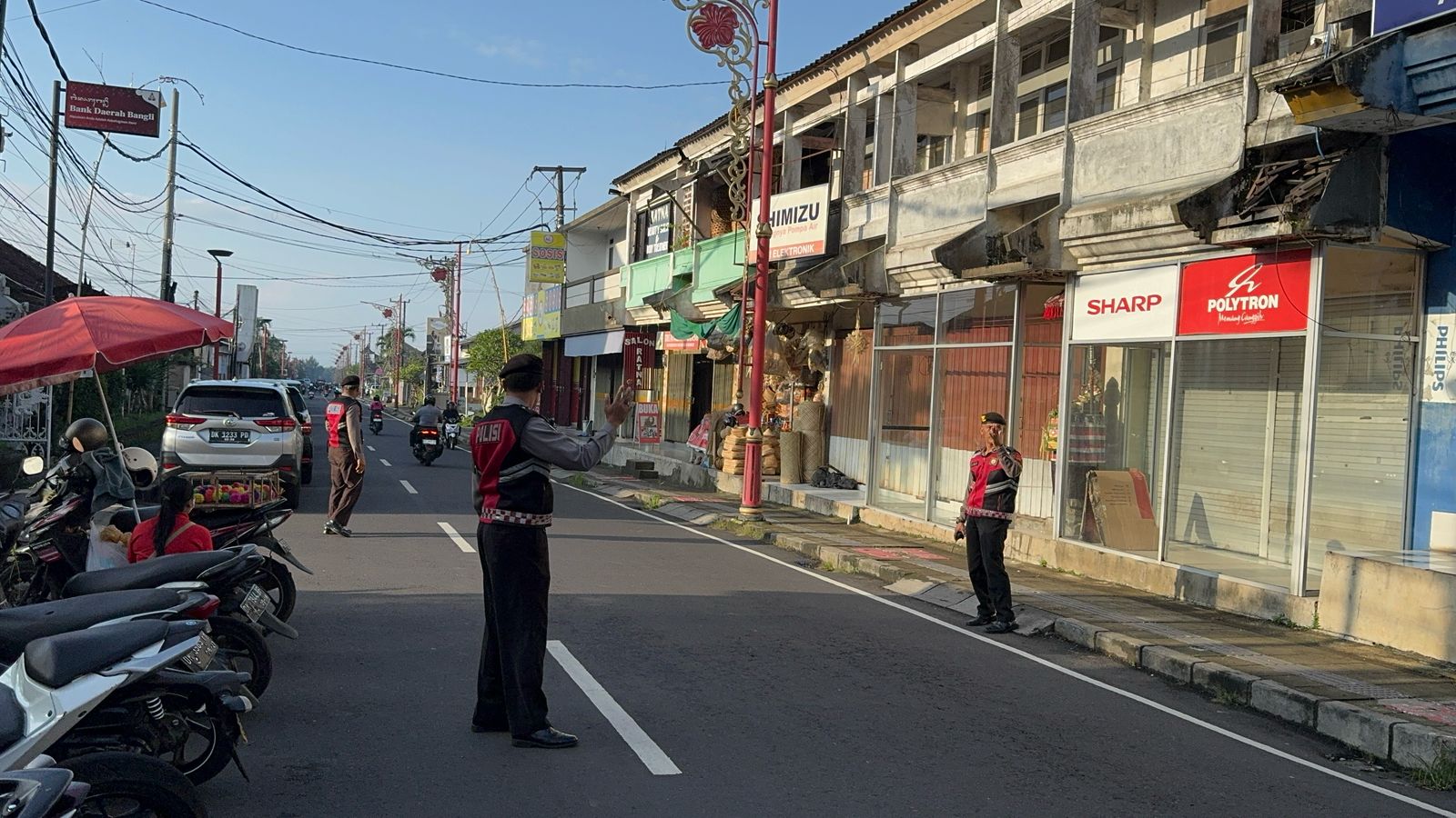 Pada hari Senin tanggal 24 Februari 2025, Personil Sat. Samapta Polres Bangli Melaksanakan giat Pengaturan arus Lalulintas di depan pasar kidul Bangli Antensi aktifitas Masyarakat, Sehingga dengan Dilaksanakan Pengaturan arus Lalulintas oleh Personil Polri Aktifitas masyarakat yang Berlalu-lalang dapat berjalan Dengan lancar.