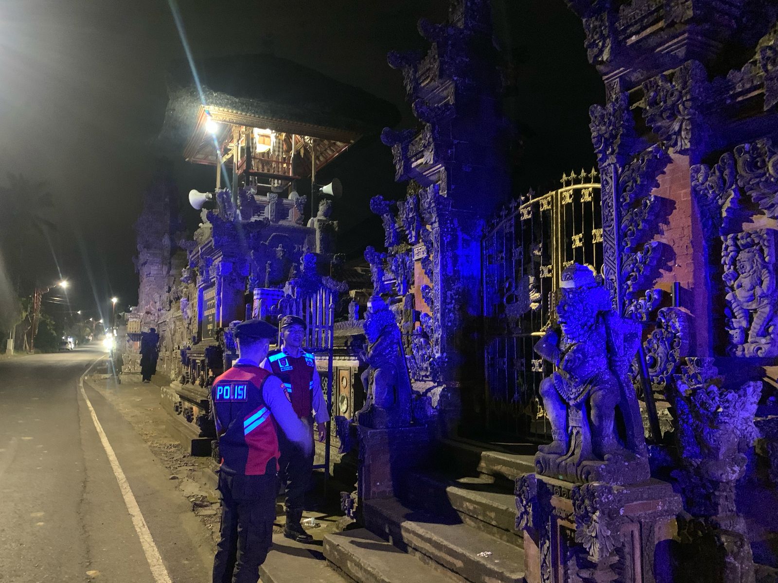 Menjaga Situasi Tetap Kondusi Pada Malam Hari, Sat Samapta Polres Bangli Sambangi Tempat Suci Pura Dalem Penunggekan, Blumbang, Bangli
