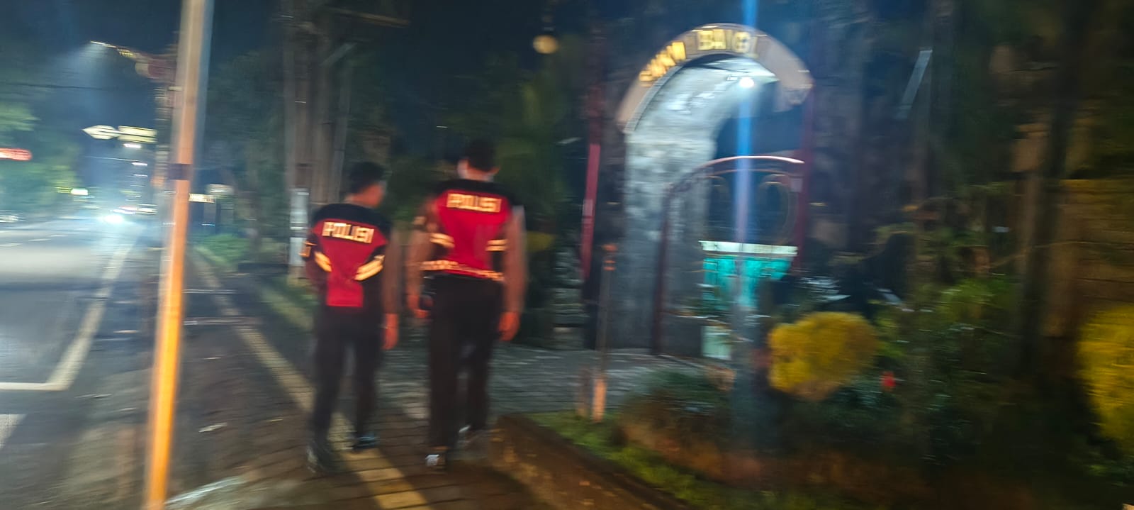 Menjaga Situasi Tetap Kondusi Pada Malam Hari, Sat Samapta Polres Bangli Sambangi Tempat Suci Pura Di Pura Penatraan Er, Malet , Bangli.