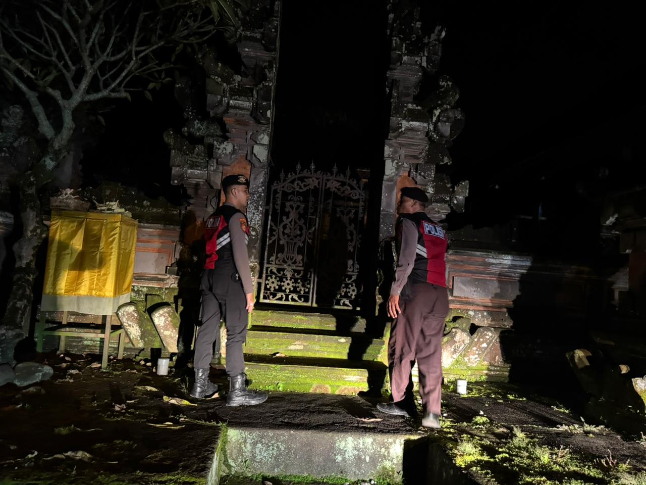 Menjaga Situasi Tetap Kondusi Pada Malam Hari, Sat Samapta Polres Bangli Sambangi Tempat Suci Pura Penataran Er Malet, Kel. Kawan, Kec. Bangli