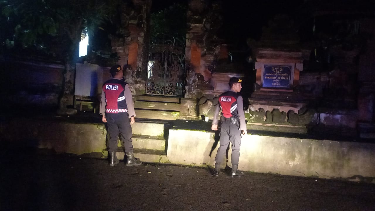 Menjaga Situasi Tetap Kondusi Pada Malam Hari, Sat Samapta Polres Bangli Sambangi Tempat Suci Pura Penataran Er Malet, Kel. Kawan, Kec. Bangli