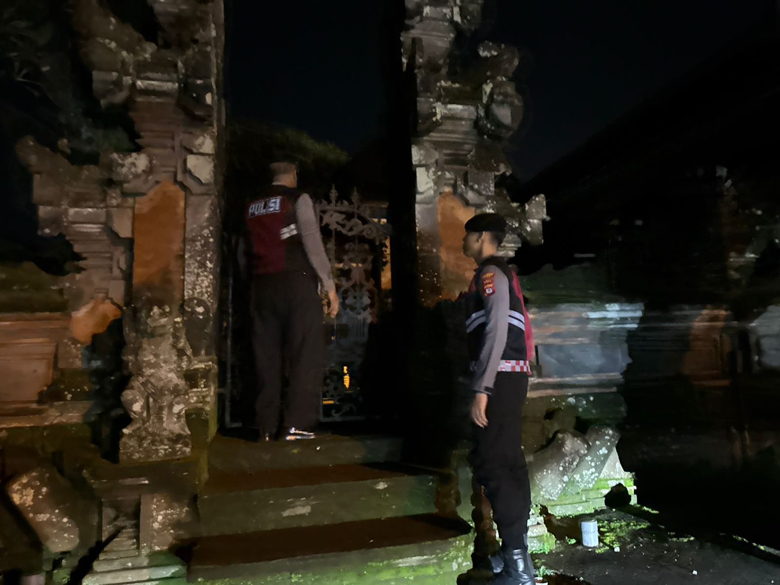 Menjaga Situasi Tetap Kondusi Pada Malam Hari, Sat Samapta Polres Bangli Sambangi Tempat Suci Pura Penataran Er Malet, Kel. Kawan, Kec. Bangli