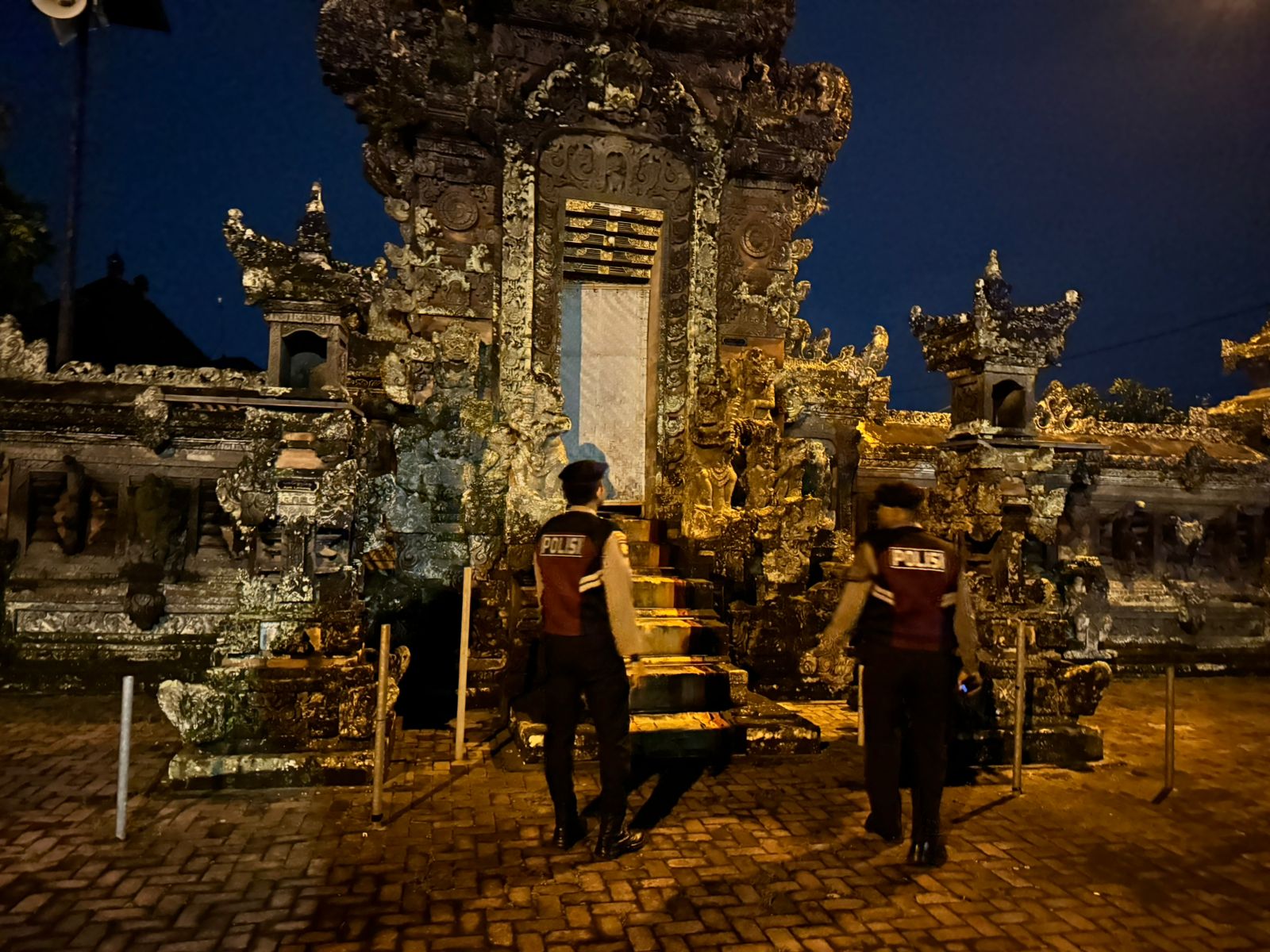 Menjaga Situasi Tetap Kondusi Pada Malam Hari, Sat Samapta Polres Bangli Sambangi Tempat Suci Pura Puseh Bangli, Kel. Kawan, Kec. Bangli