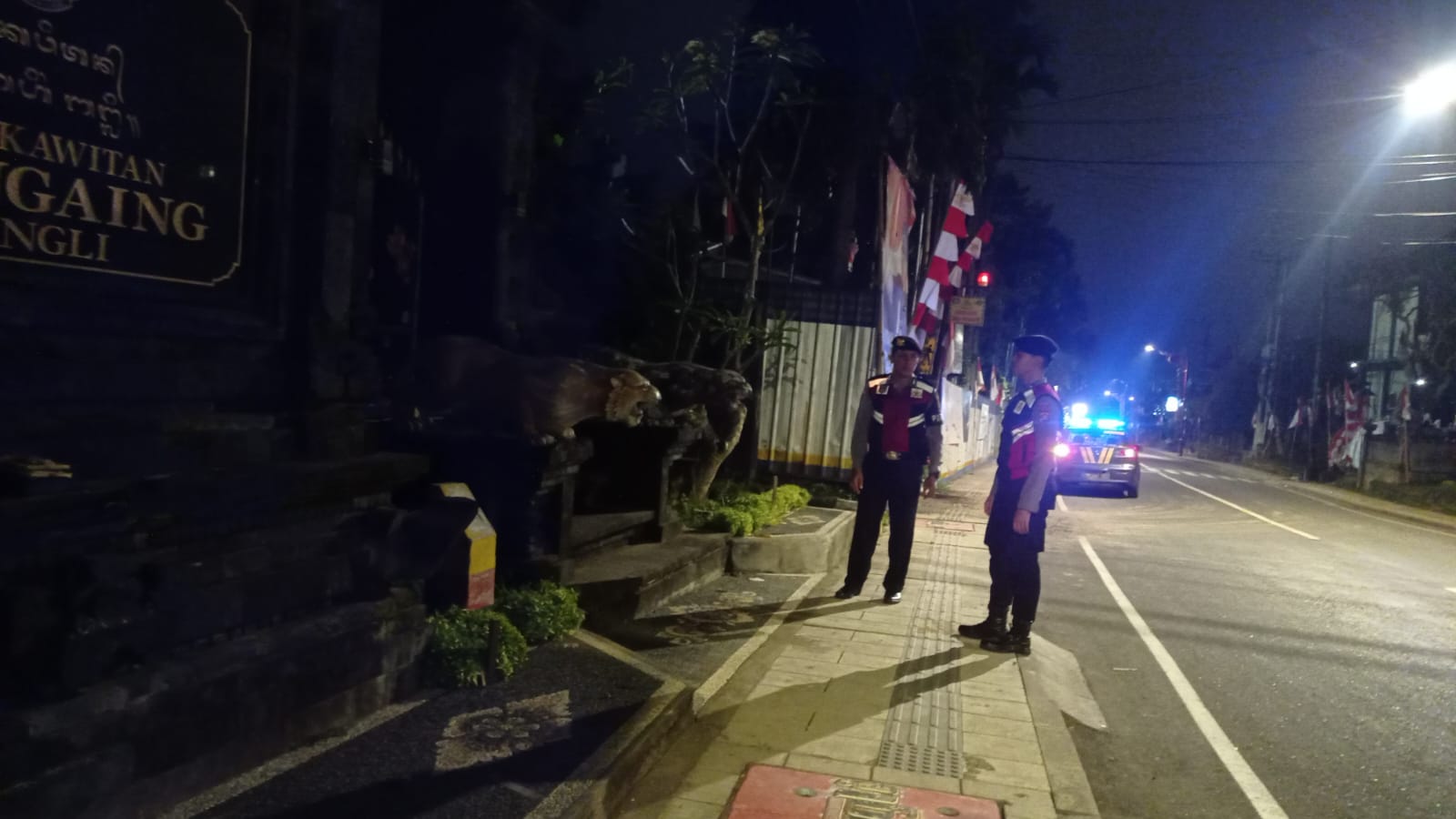 Menjaga Situasi Tetap Kondusi Pada Malam Hari,Sat Samapta Polres Bangli Sambangi Tempat Suci Pura Kawitan Batu Gaing, Bangli