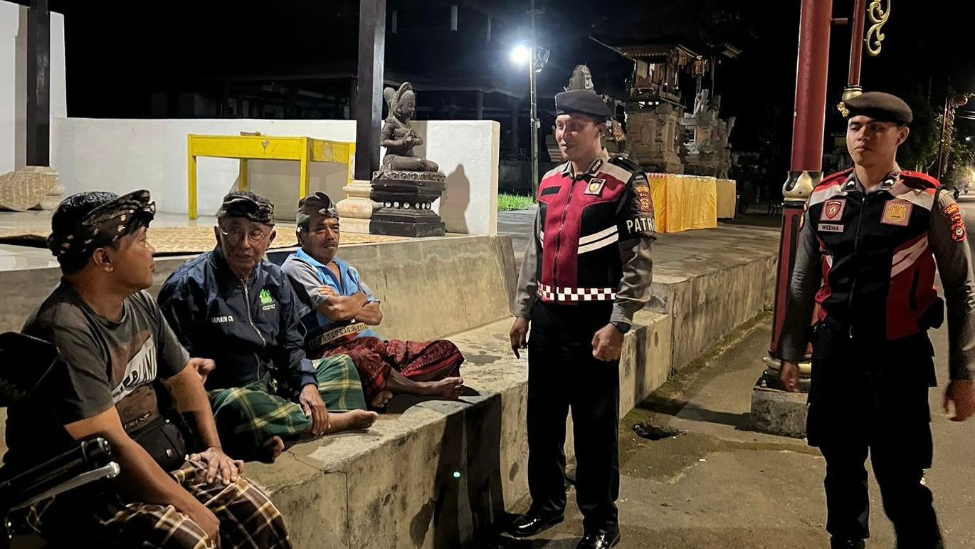 personil melaksanakan patroli dialogis dengan krama pekemitan di Pura Dalem Penunggekan,