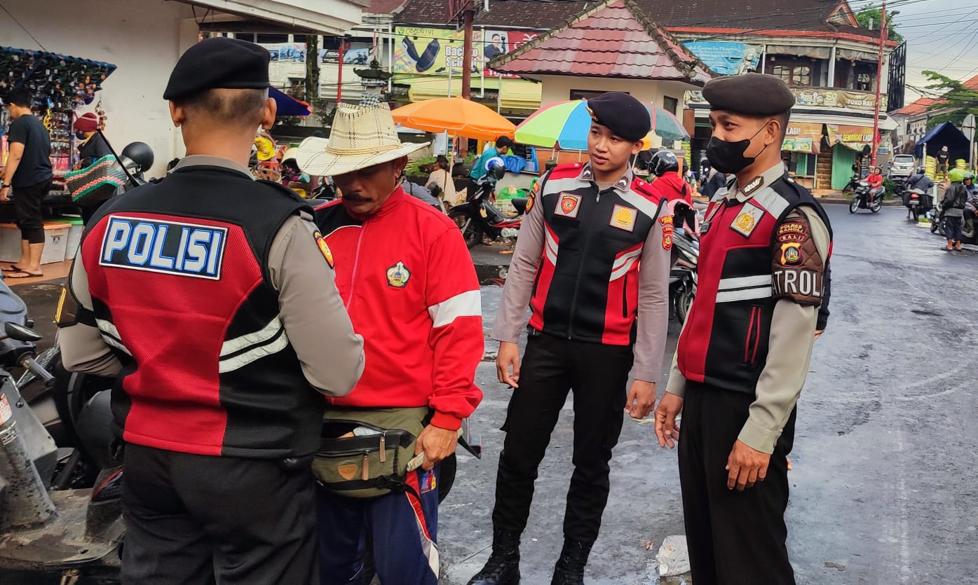 Personil Satuan Samapta Polres Bangli melaksanakan patroli dialogis dengan menyambangi Juru Parkir di Pasar Kidul Bangli.