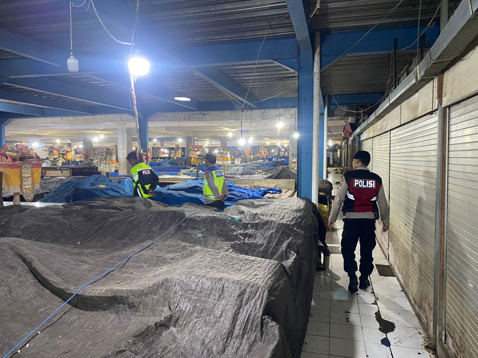 Blue Light Patrol guna antisipasi kegiatan masyarakat di malam hari, Kemudian pawas bersama anggota Sambangi Obvit SPBU, Pasar Kidul, Obvit Perbankan dan Pemukiman Penduduk serta tempat keramaian Warga lainnya.