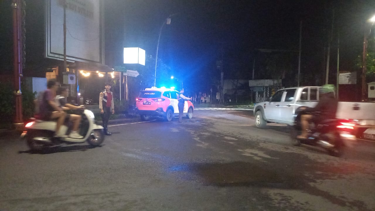 Sat Samapta Laksanakan Gatur dan Pergelaran Blue Light Randis R4 di Pusat Keramaian Malam Di Kota Bangli Demi Kenyamanan Dan Kelancaran Arus Lalu lintas Pada Malam.